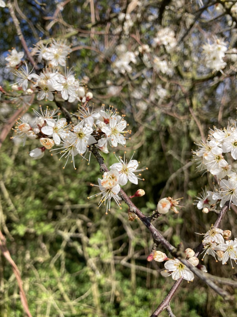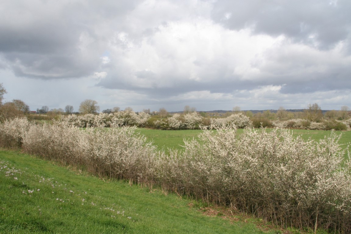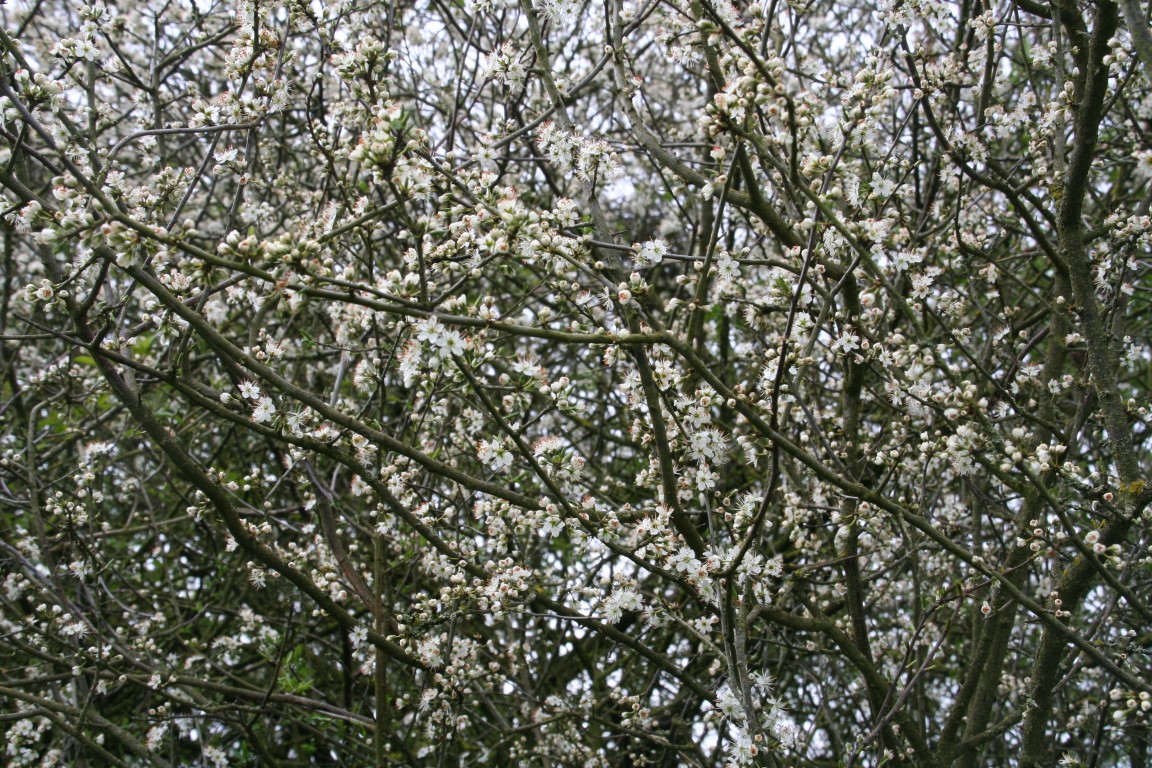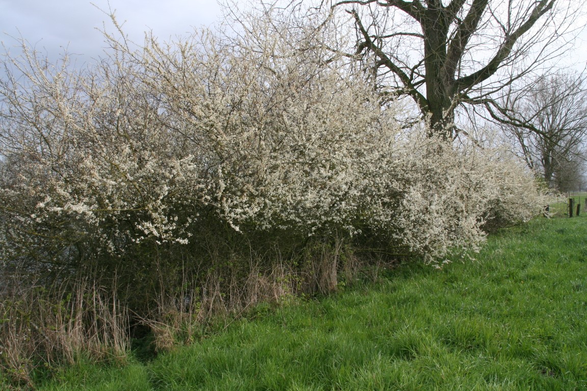 Voor de bloeiende Meidoorn zijn we eigenlijk nog te vroeg. Echter de Sleedoorn staat in volle bloei.