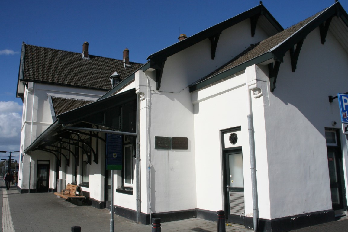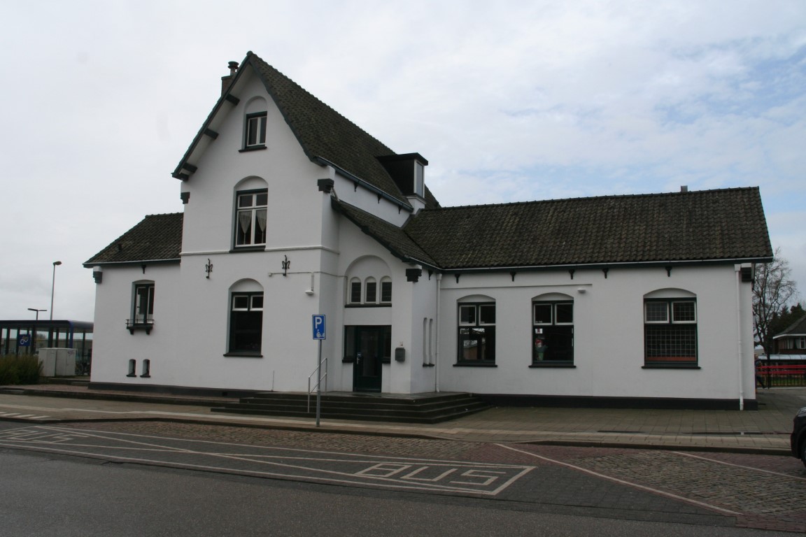 Het witte stationsgebouw van het type Hemmen is gebouwd in 1882. Het station, dat is gelegen aan de Maaslijn, is geopend in 1883.