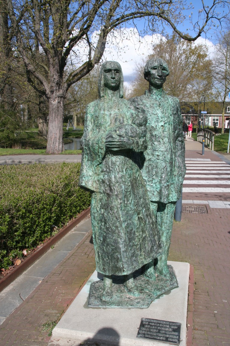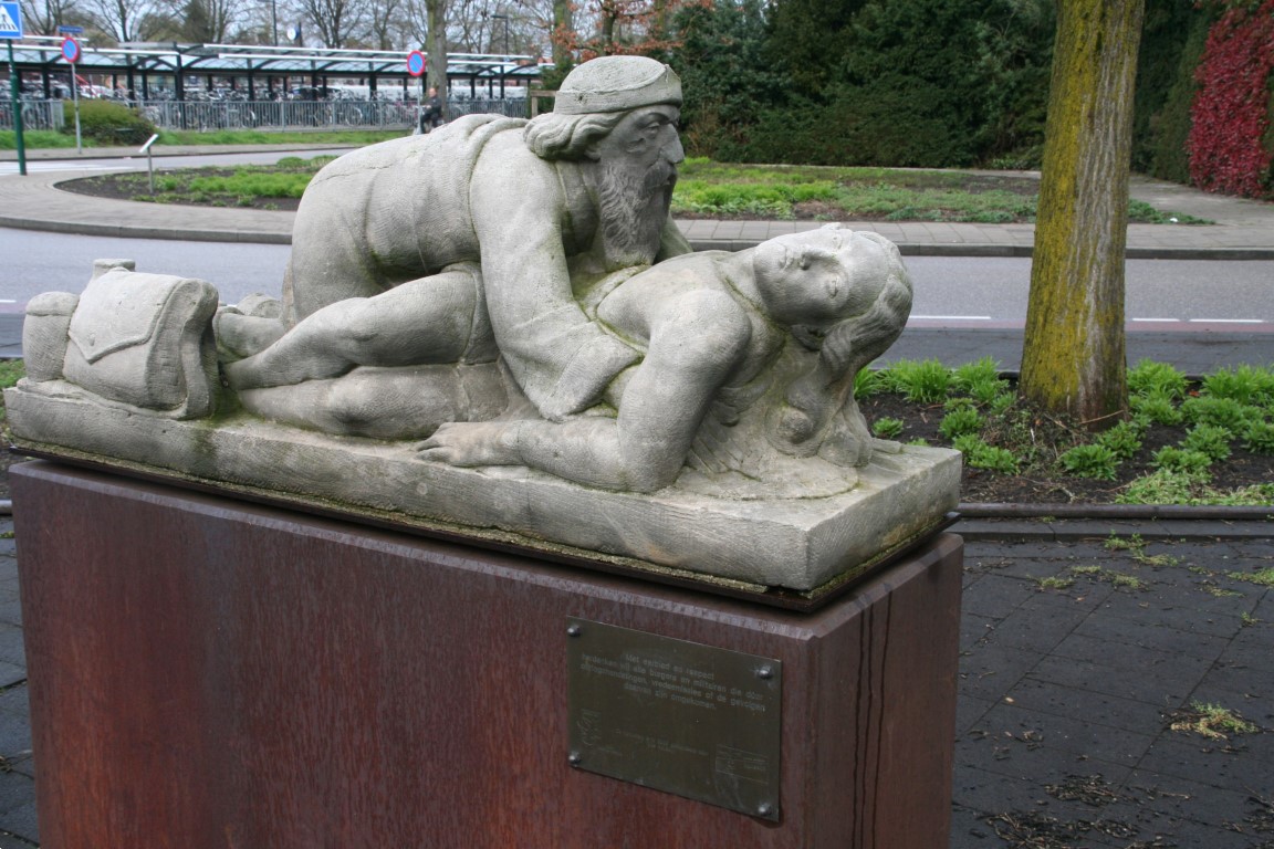 - Linksboven: Oorlogsmonument “de Barmhartige Samaritaan”. Dit beeld is ter herdenking aan de gebeurtenissen van 10 mei 1940.