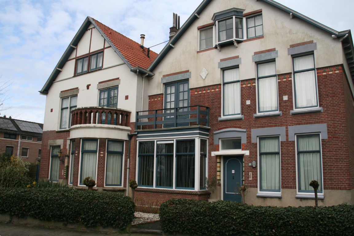 - Rechts: Woonhuis met kenmerken van de Chaletstijl en een strakke vorm van Art Nouveau, gebouwd in 1913
