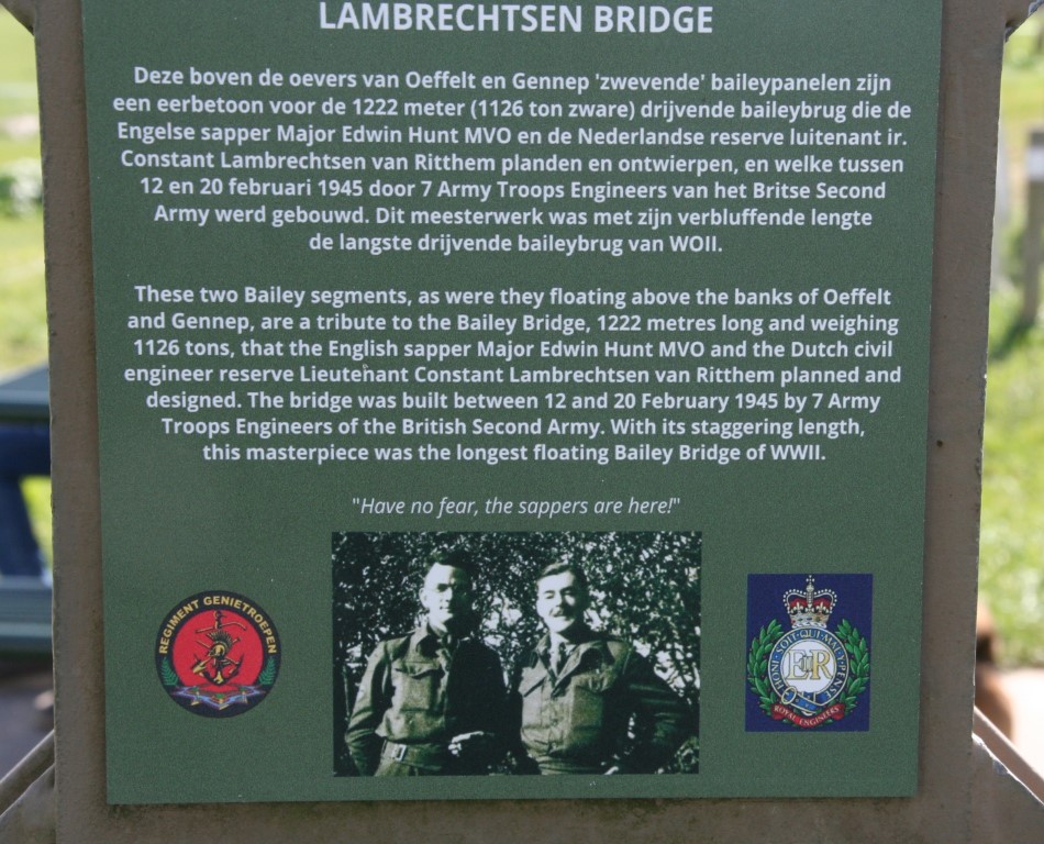 Op 12 februari 1945 bevrijdden de Geallieerden het Noord-Limburgse stadje Gennep. De inname van Gennep was essentieel om via het Duitse Goch te kunnen doorstoten naar het hart van het Duitse Rijk. Als gevolg van zware regenval en het opblazen van de dammen in de Roer stond de Maas heel hoog. Er werd op 12 februari 1945 met de bouw begonnen en men was klaar op 20 februari 1945. Deze brug werd gebouwd onder leiding van Majoor Hunt Royal Engineers en de Nederlandse Luitenant Constant Lambrechtsen van Ritthem die een ingenieur was bij Rijkswaterstaat, die al aan het plannen begonnen waren eind 1944.