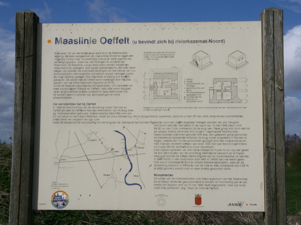 De noordelijke bunker ter verdediging van de Maasbrug bij Gennep. Het Noord-Brabantse deel van de Maaslinie liep van Maashees tot aan Katwijk. In tegenstelling tot de andere waterlinies die hier behandeld zijn, was de Maaslinie niet gebaseerd op inundatie, het onder water zetten van een gebied, al maakte de Maaslinie natuurlijk wel gebruik van water, namelijk de rivier de Maas, die op zichzelf al een natuurlijke barrière vormde.
