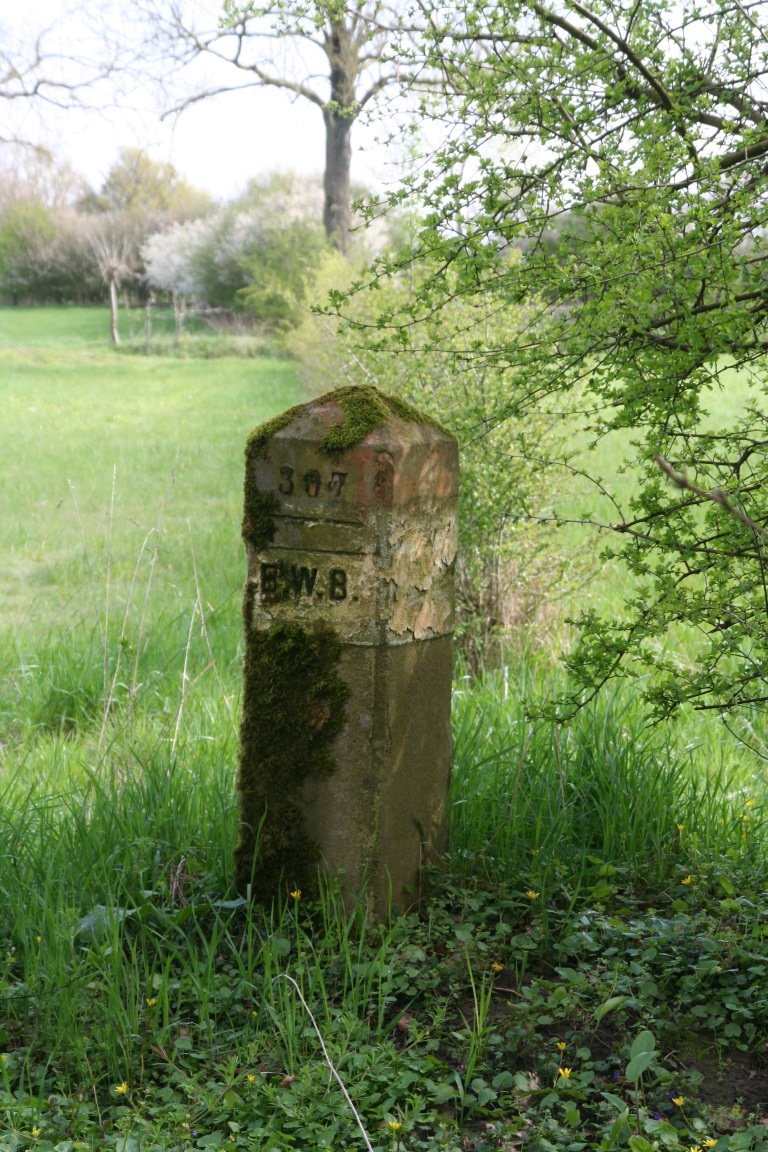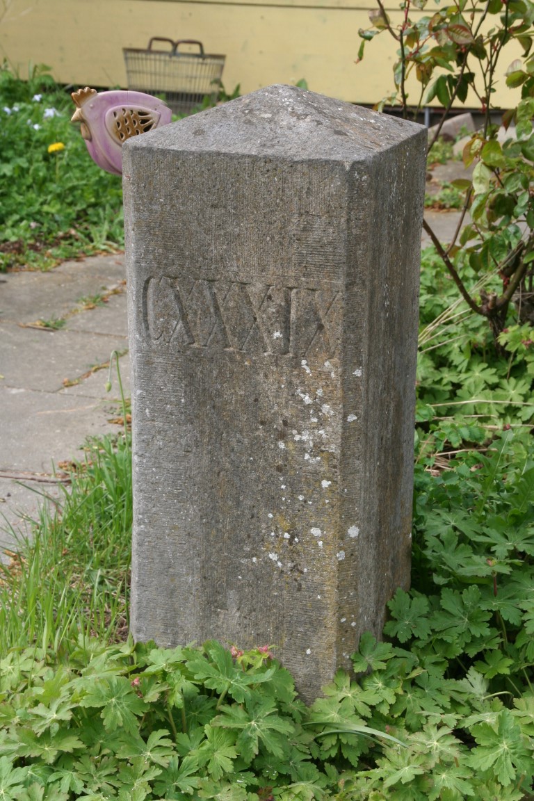 Deze Maaspaal of kilometerraaipaal staat in een tuin in het dorp Vierlingsbeek.