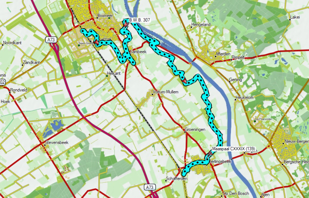 Etappe – 2 van Boxmeer naar Vierlingsbeek. Een wandeling van 17,7 km.