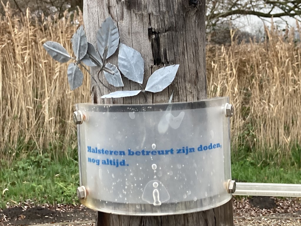 Het monument uit 2003 bestaat uit een achttiental vloedpalen waarop de waterstand van de nacht van 1 februari 1953 wordt verbeeld middels witte markeringen. Op elke vloedpaal is een tekst opgenomen uit het boek welke de herinneringen van overlevenden vastlegt. Tevens is een vloedpaal uitgerust met een aantal zinken rozen. Deze 78 rozen symboliseren het aantal slachtoffers in Halsteren en Lepelstraat van de watersnoodramp in 1953, tezamen met een afbeelding van de Zon en de Maan.