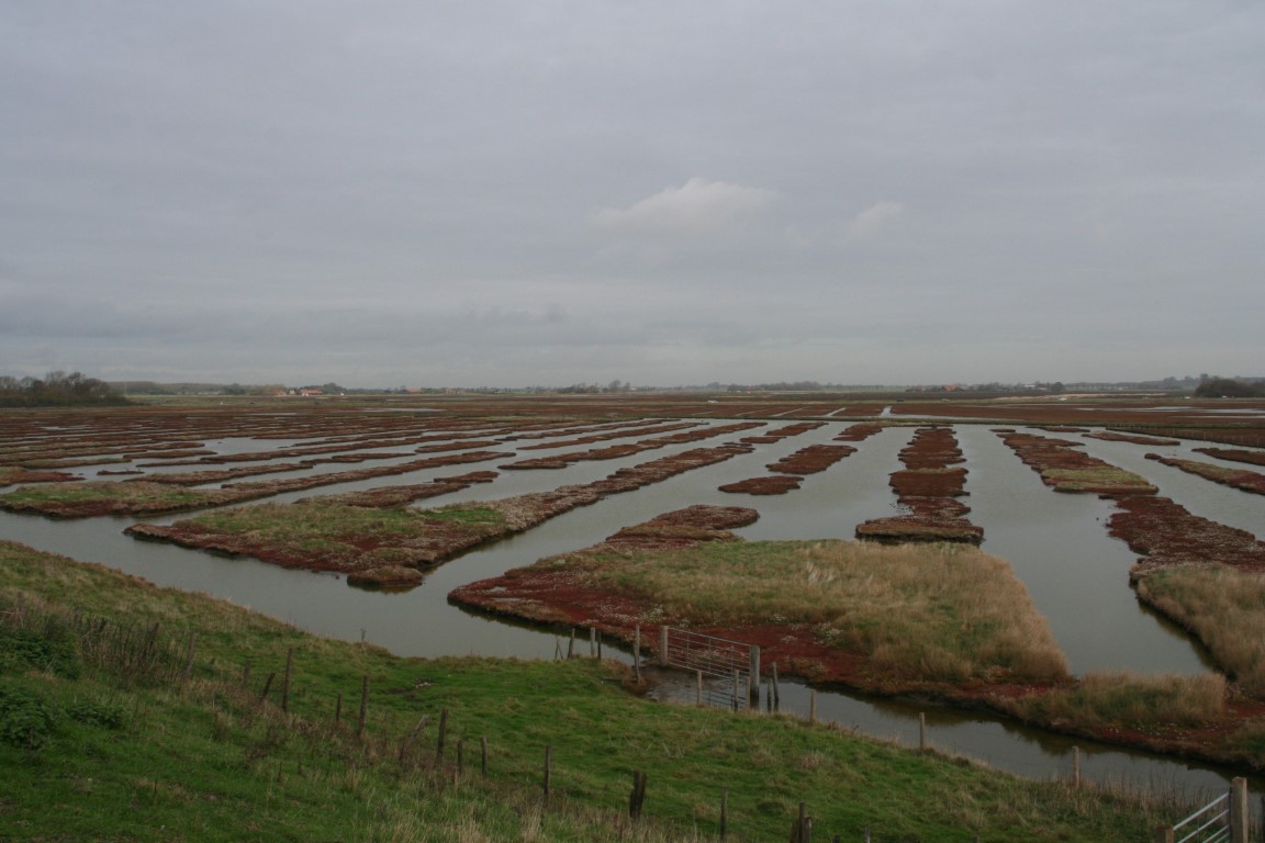 Inlagen en karrevelden, en hollebollige weides waar ooit zout veen is afgegraven.