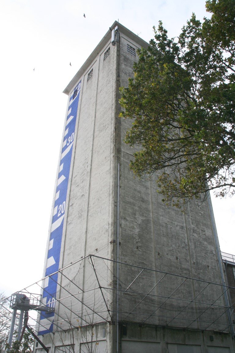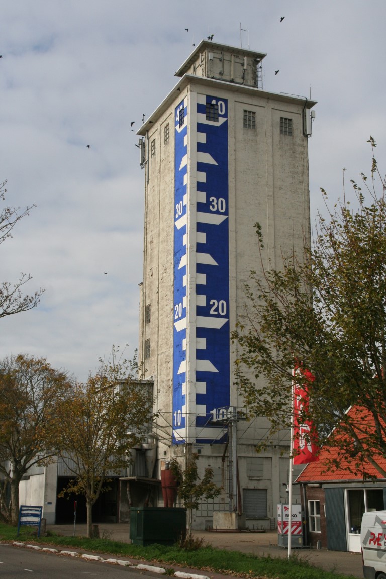 De graansilo in Zierikzee, gebouwd in 1955, is een opvallend industrieel bouwwerk met een hoogte van 47,10 meter. Tekening op de graansilo die aangeeft hoe hoog de zeespiegel staat “In Zierikzee staat een lelijke witte graansilo. Daar moet een peil op komen, die aangeeft hoe hoog de zeespiegel op dit moment staat. Dan zien we direct of het water al aan onze lippen staat.”