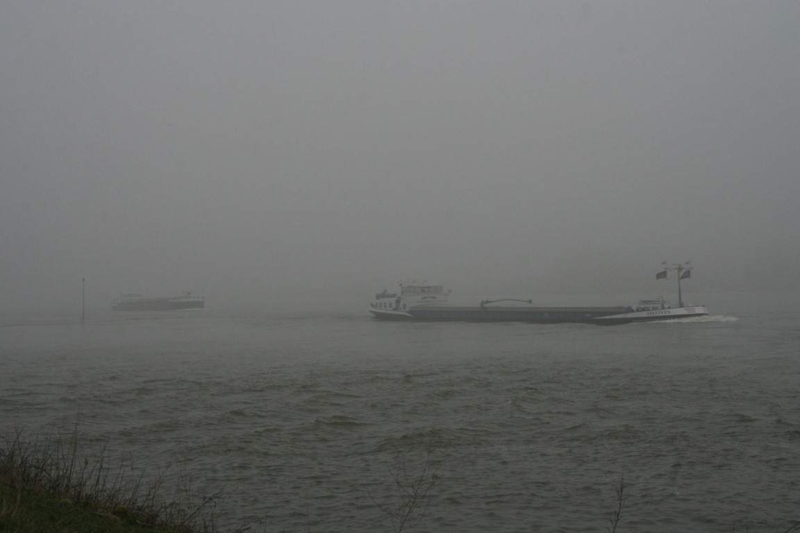 Intussen gaat het scheepvaartverkeer gewoon verder.