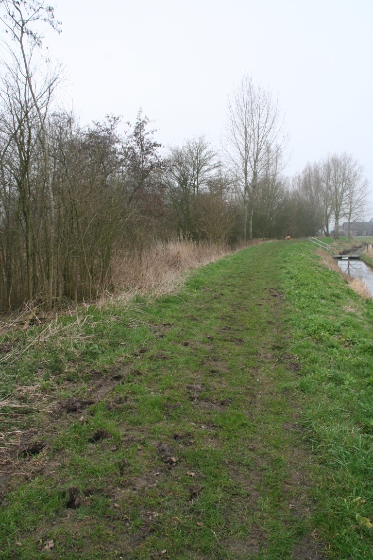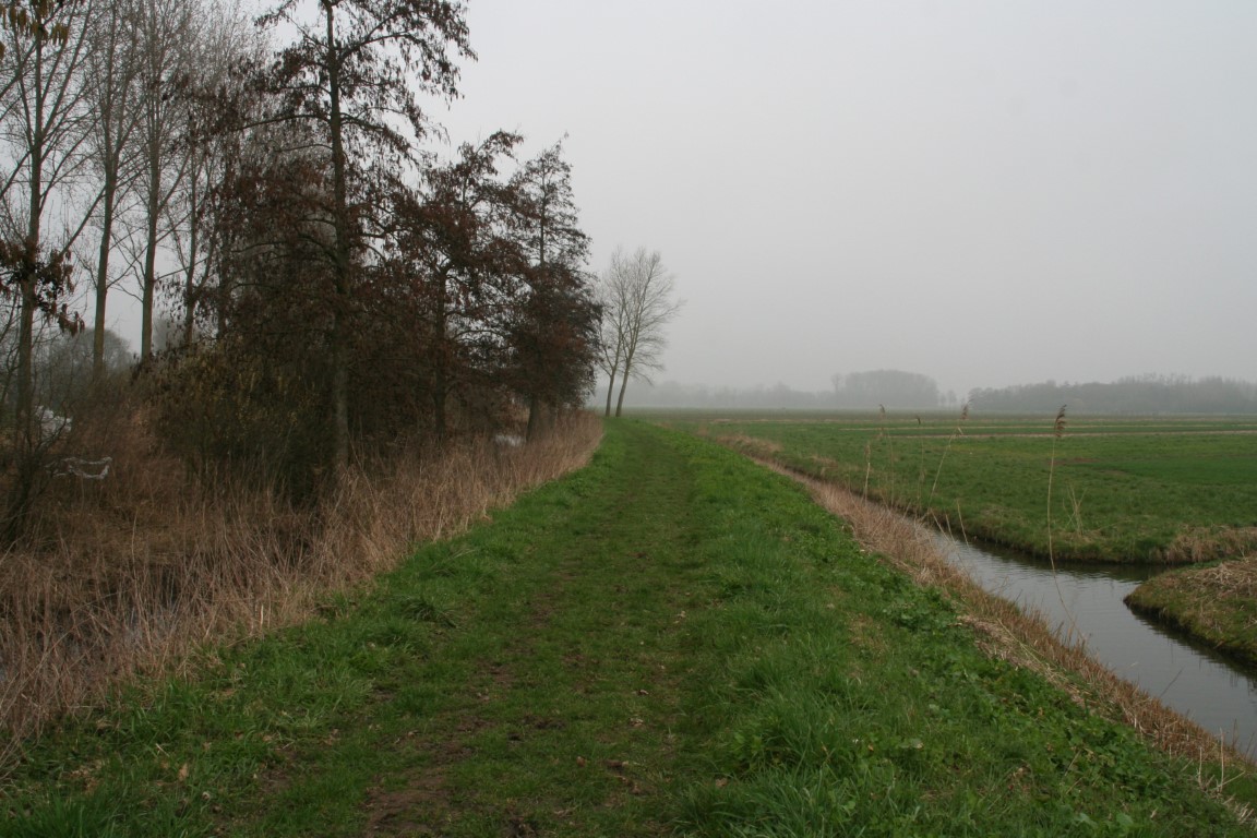 We wandelen verder over de Meidijk. Deze dijk verbindt de dijken van de Waal en de Afgedamde Maas met elkaar.