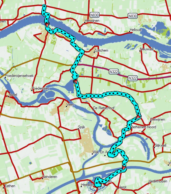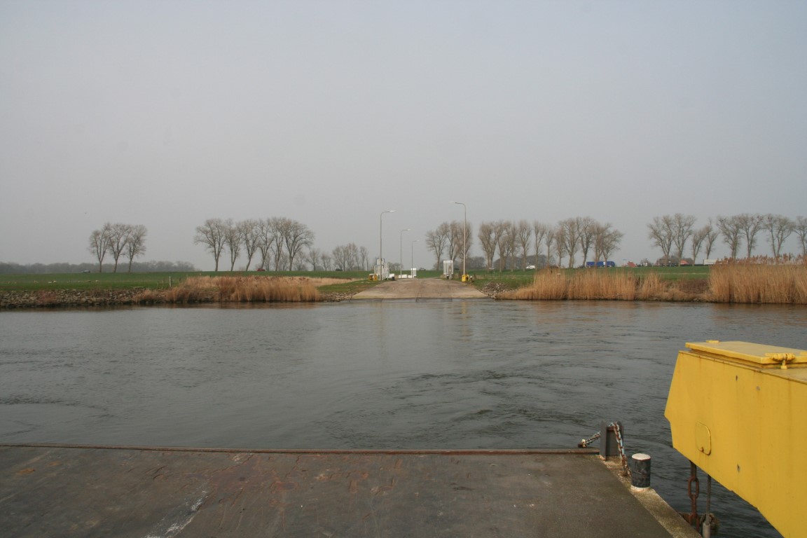 We vervolgen onze wandeling richting Nederhemert-Noord waar we de pont nemen over de Afgedamde Maas.
