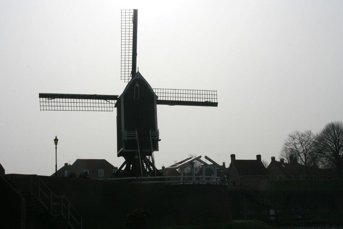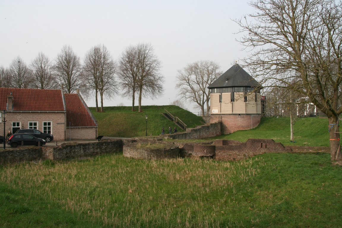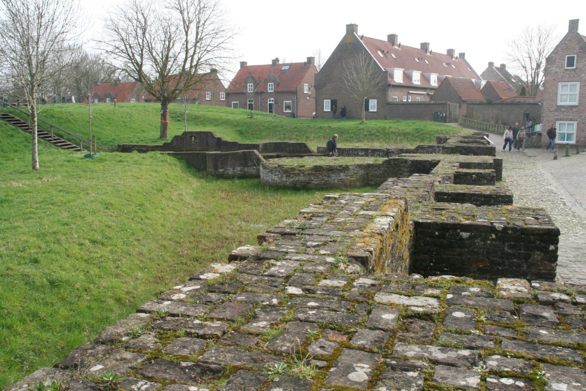 We naderen Heusden en zien gelijk een gedeelte van de stadswallen.
