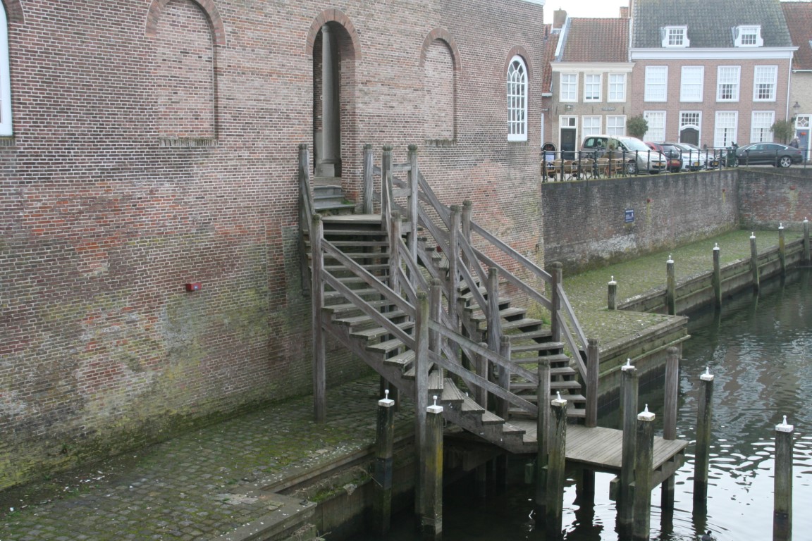 De Water- of Veerpoort stond er al in de 14e eeuw om met een muurdoorgang het voetveer richting Nederhemert te beveiligen. Het voetveer vertrok aan de achterkant van de poort naar Nederhemert aan de overkant.