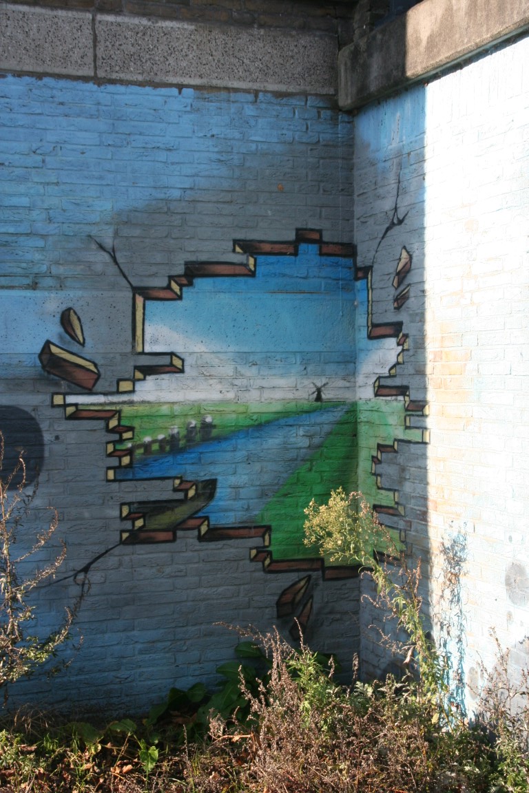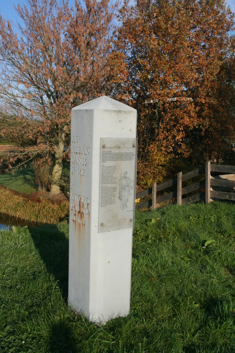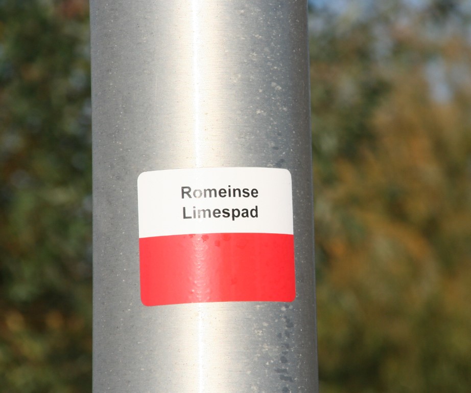 Op de plaats waar het water m.b.v. de Molenviersprong in de Oude Rijn wordt gepompt, kruisen we een andere LAW, het Romeinse Limes pad.
