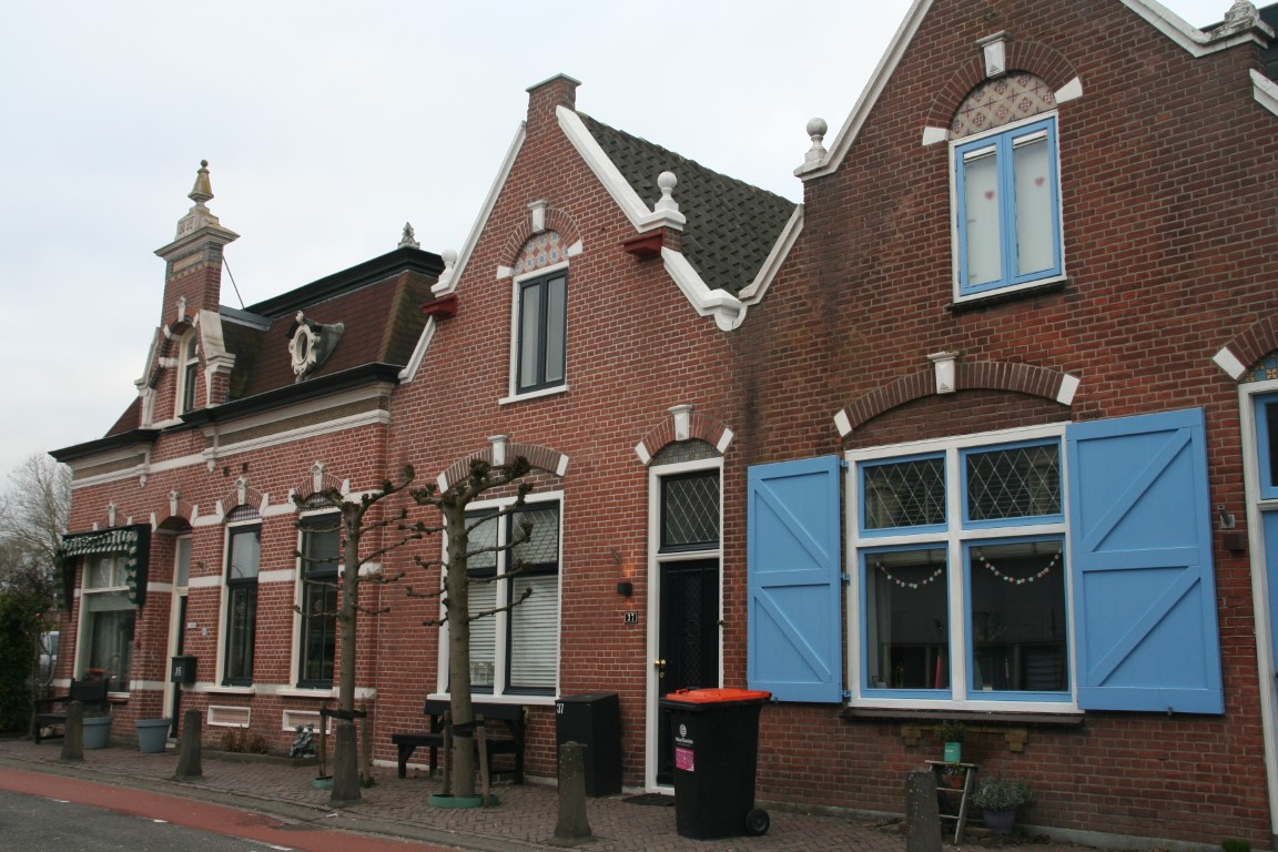 Onder en boven een aantal panden welke gebouwd zijn rond het jaar 1900 terwijl het kerkgebouw dateert van rond 1850.