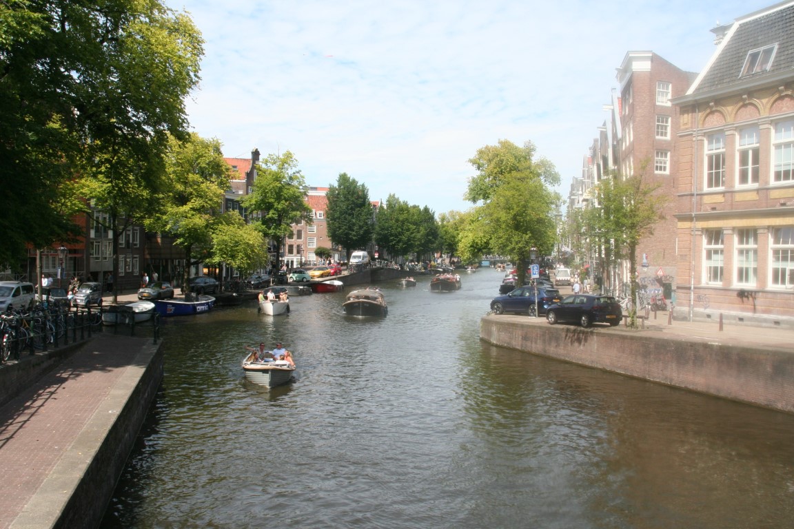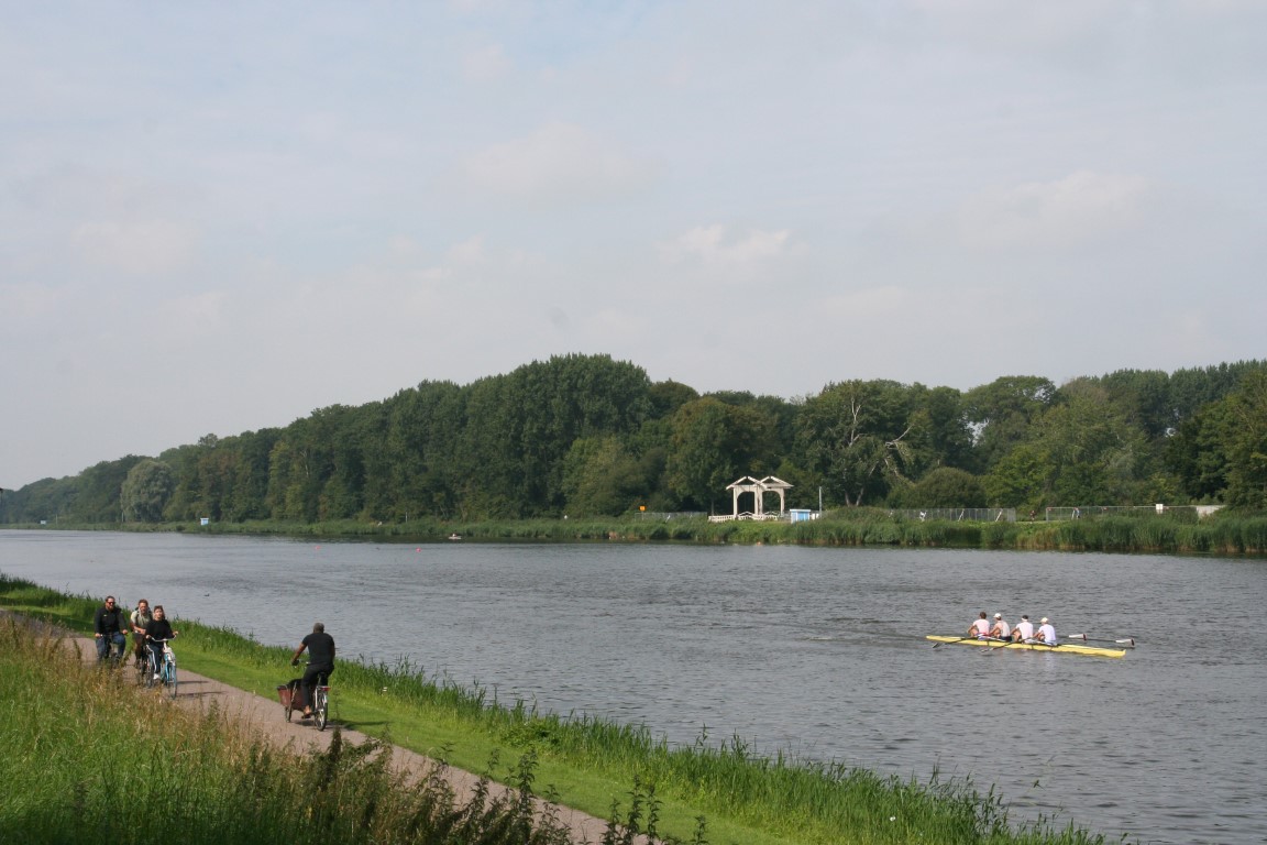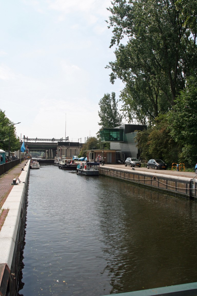 Na de brug wandelen we verder langs de Schinkel richting het Vondelpark.