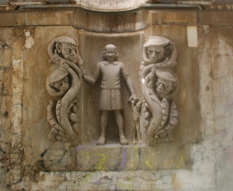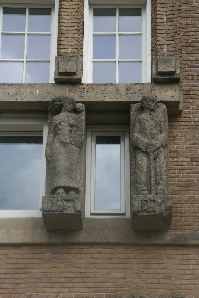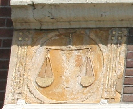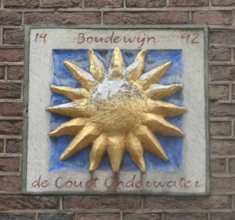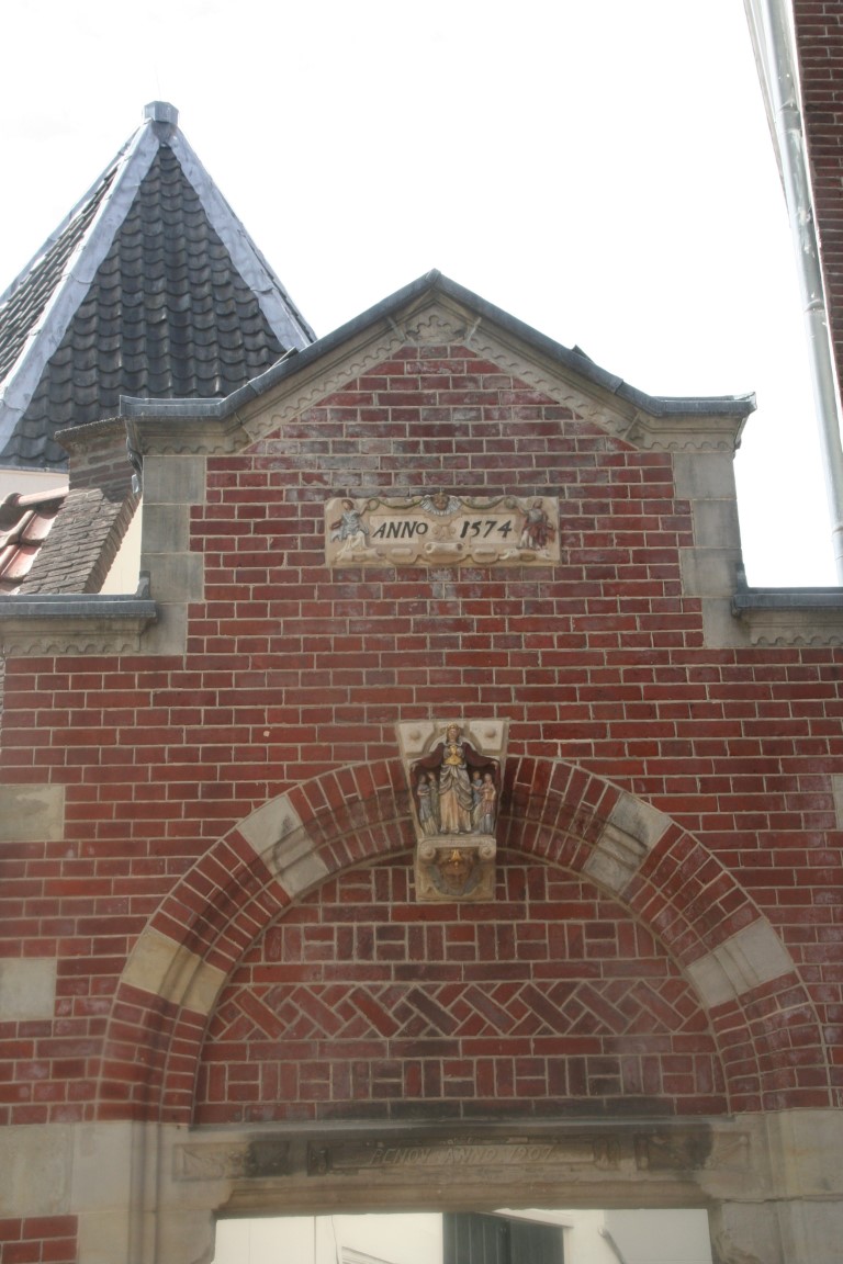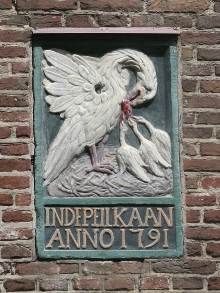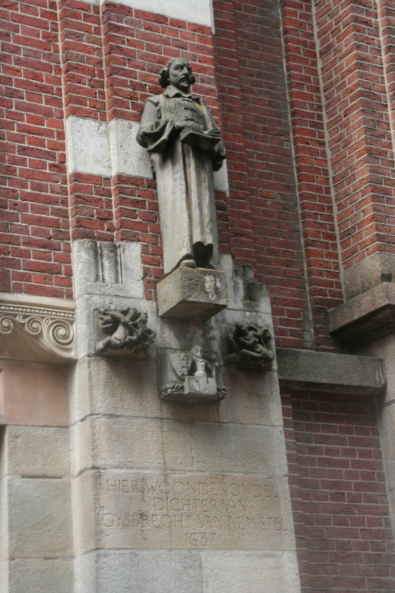Amsterdam is rijk aan gevelstenen. Rechtsonder het wapen van Amsterdam en de wapens van de bestuursleden van een schuttersgilde.