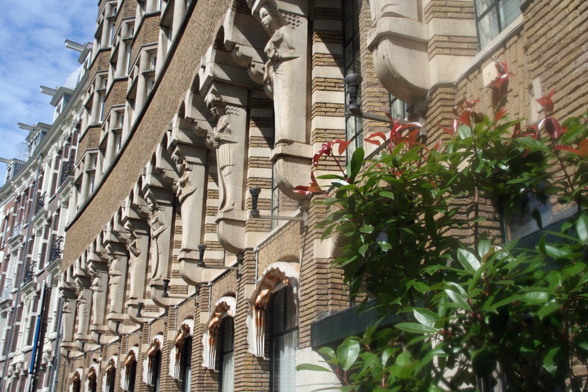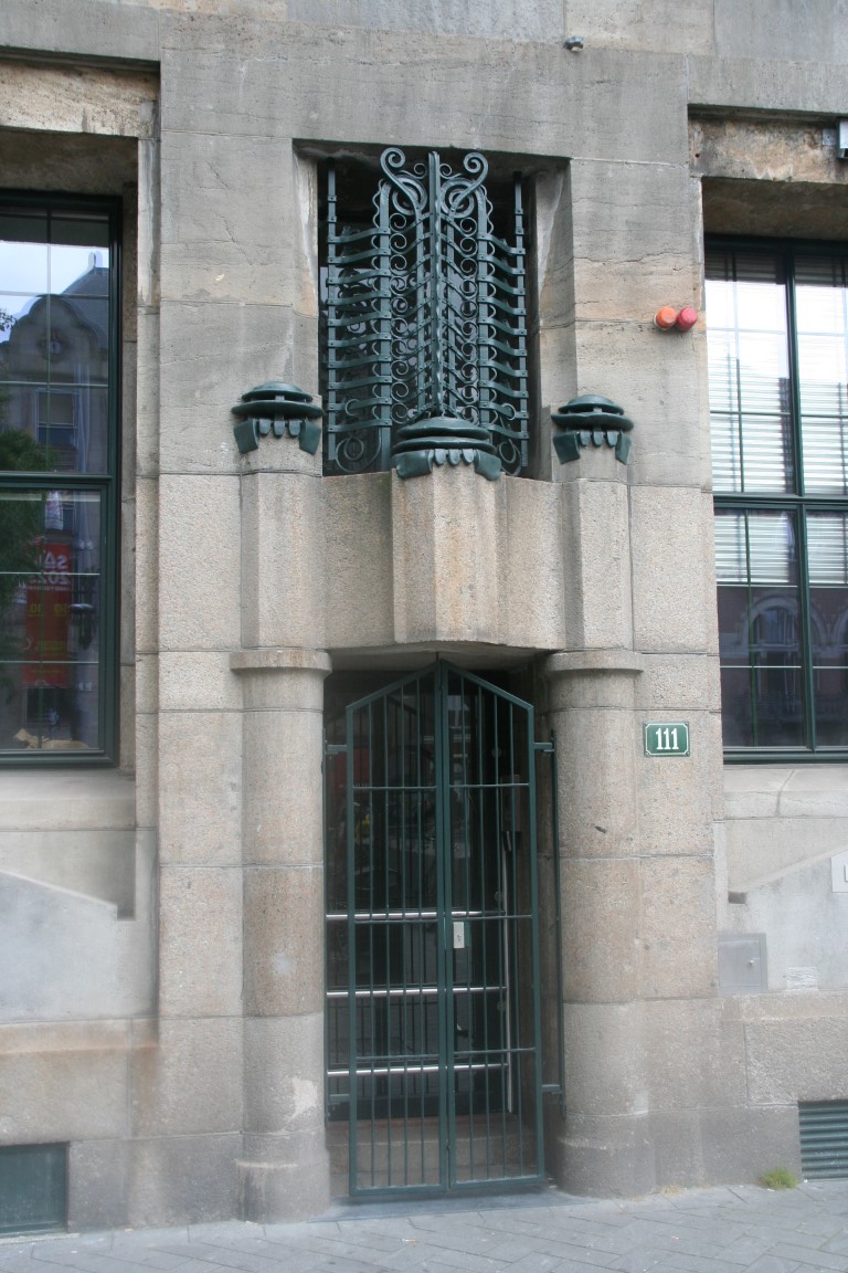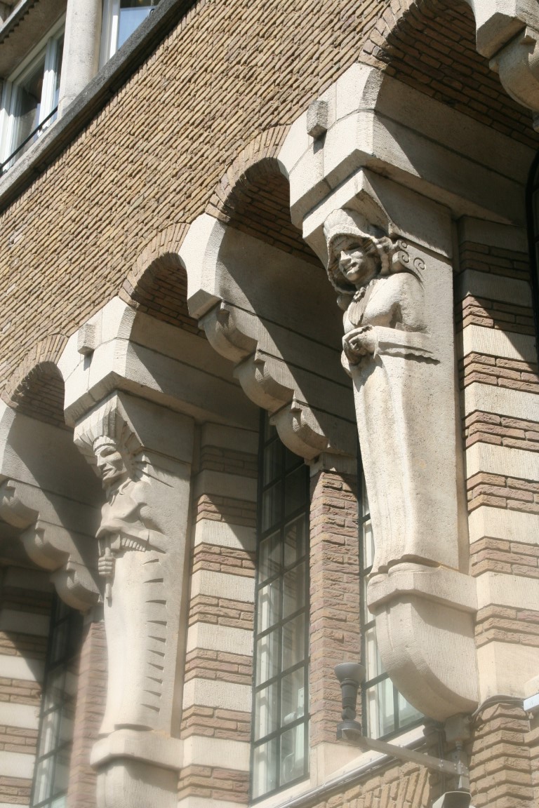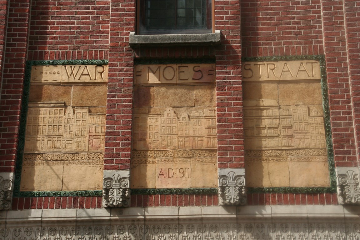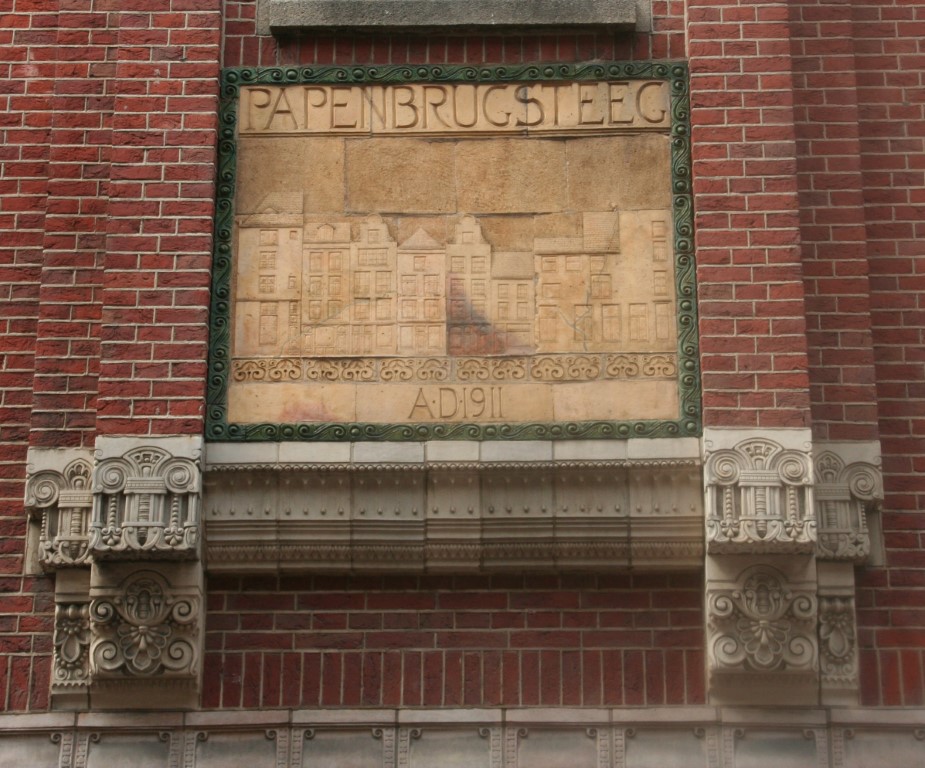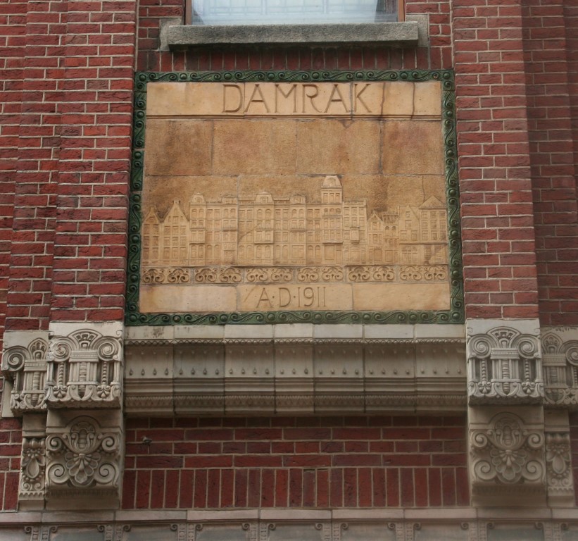Rokin metrostation en rechts een detail van het kantoor van de “Internationale Tabaksplantmaatschappij NV” uit 1919.