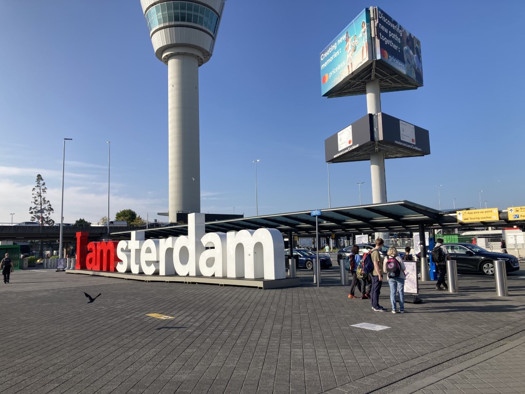 Op onze reis naar het beginpunt van deze etappe komen we op Schiphol waar we onze eerste foto’s maken.