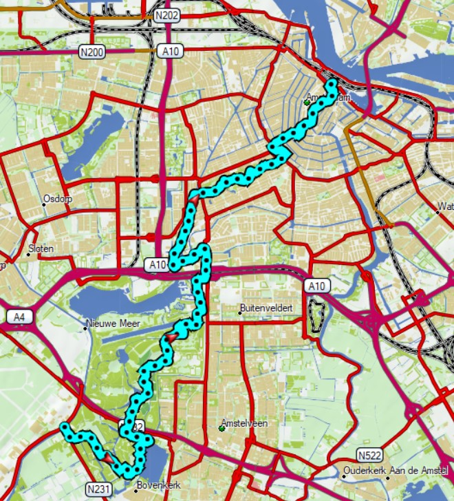 We lopen deze etappe in omgekeerde richtong. We beginnen in Schiphol – Oost en wandelen door het Amsterdamse bos richting de Bosbaan en het Olympisch stadion. Vanaf daar wandelen we langs de Ginkel richting het Vondelpark. Hierna verder door het centrum van Amsterdam naar het eindpunt van deze etappe, het centraal station.