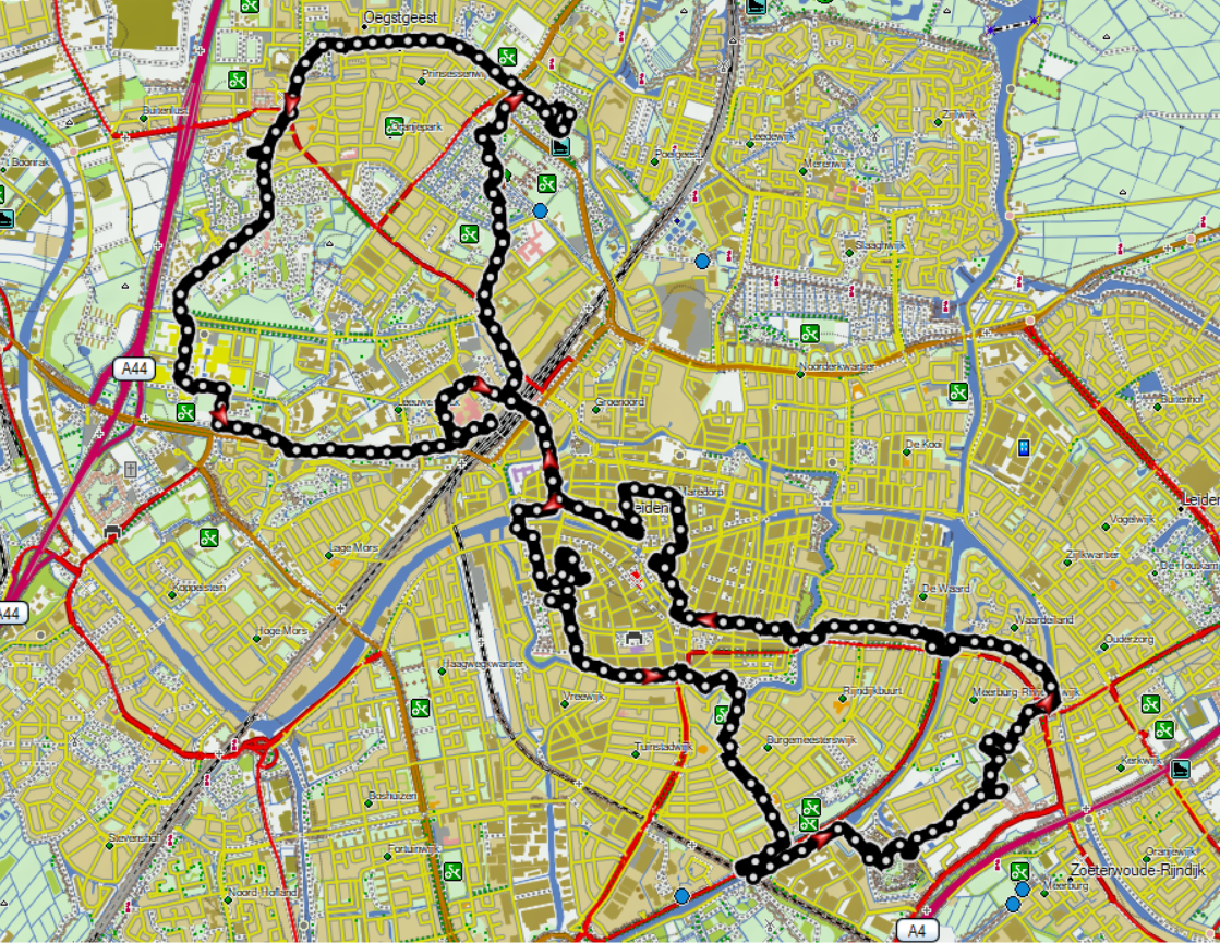 Een rondwandeling door de stad Leiden met een lengte van 22 km.