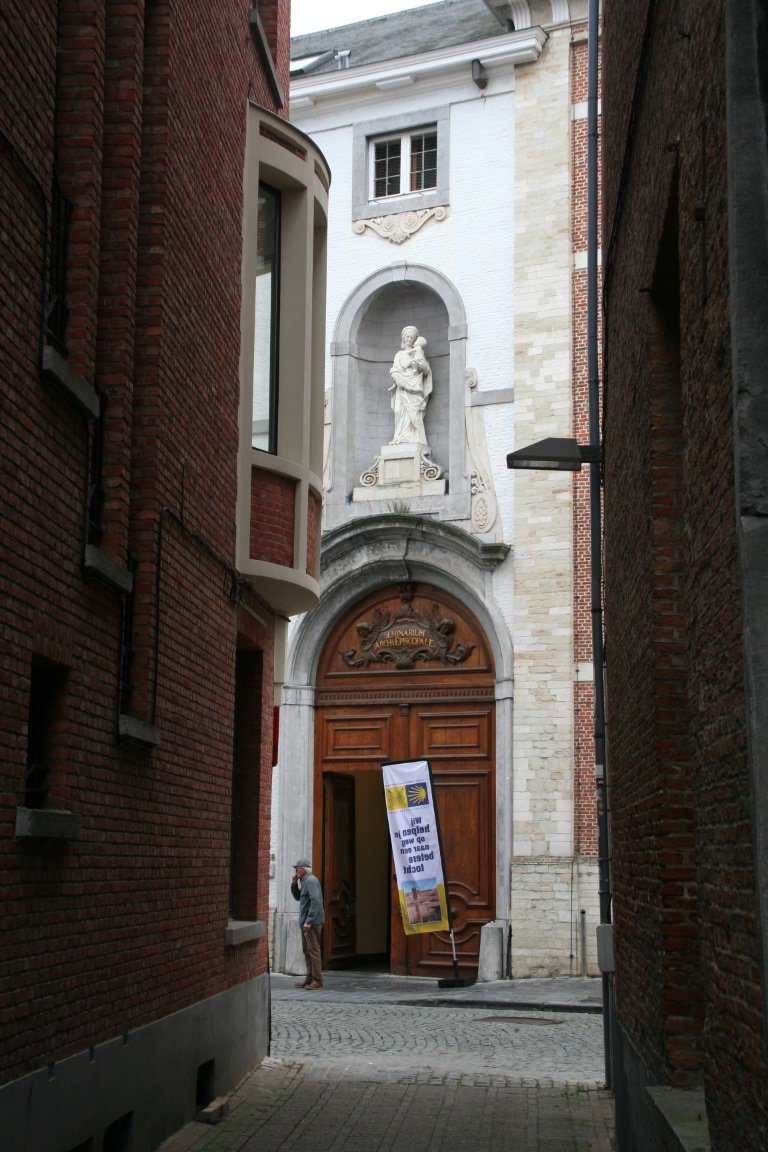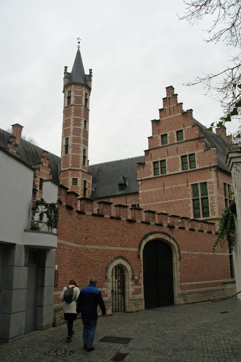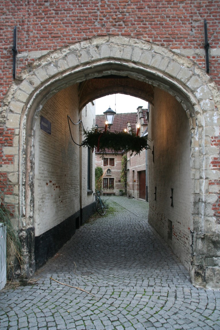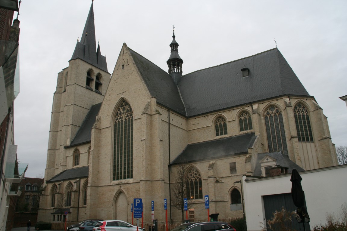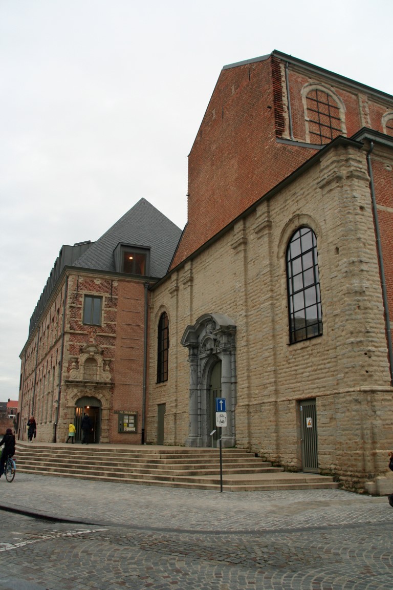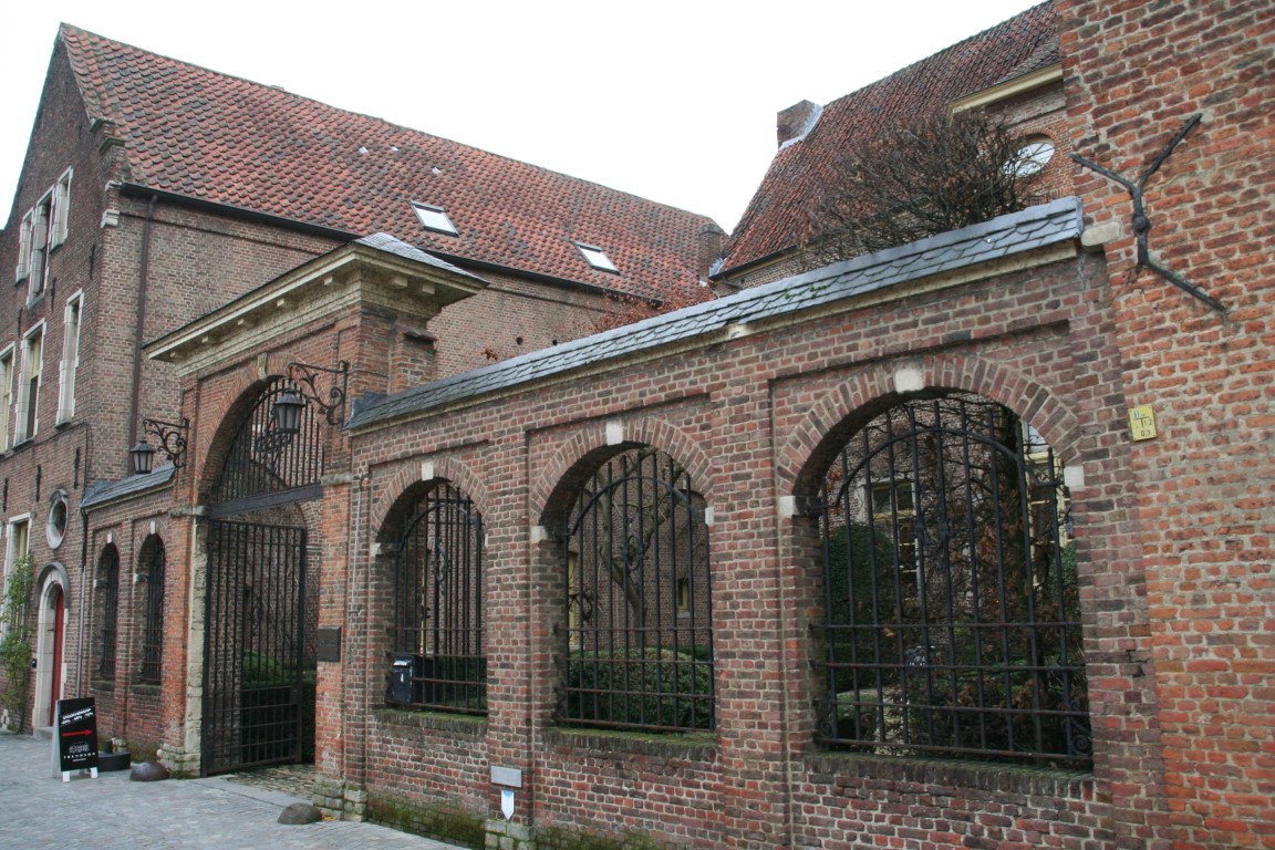 Het Groot Begijnhof is gesticht in de 13e eeuw en sinds het eind van de 16e eeuw gevestigd binnen de stadsmuren. Aan de Jesuspoort ziet men onder de poort een gotische kolom als getuige van de overblijfselen vanhet Hof van Fontes dat zich bij de aankoop in 1595 uitstrekte tot aan de huidige kerk.