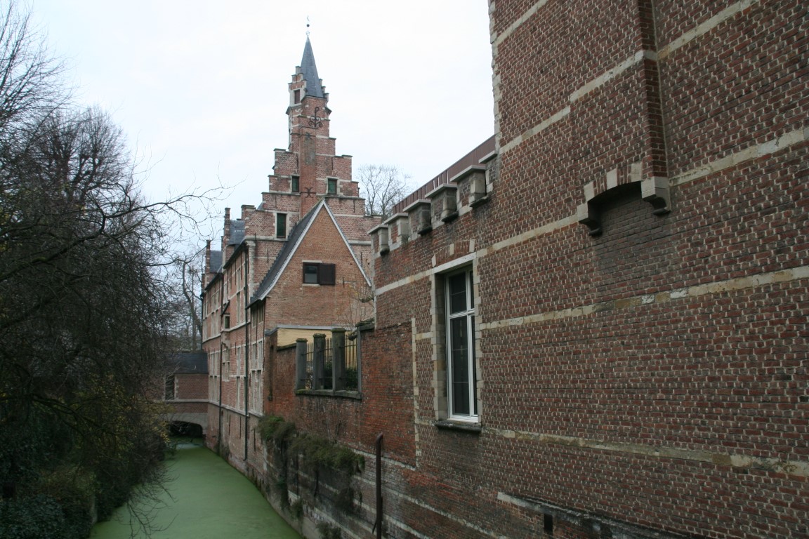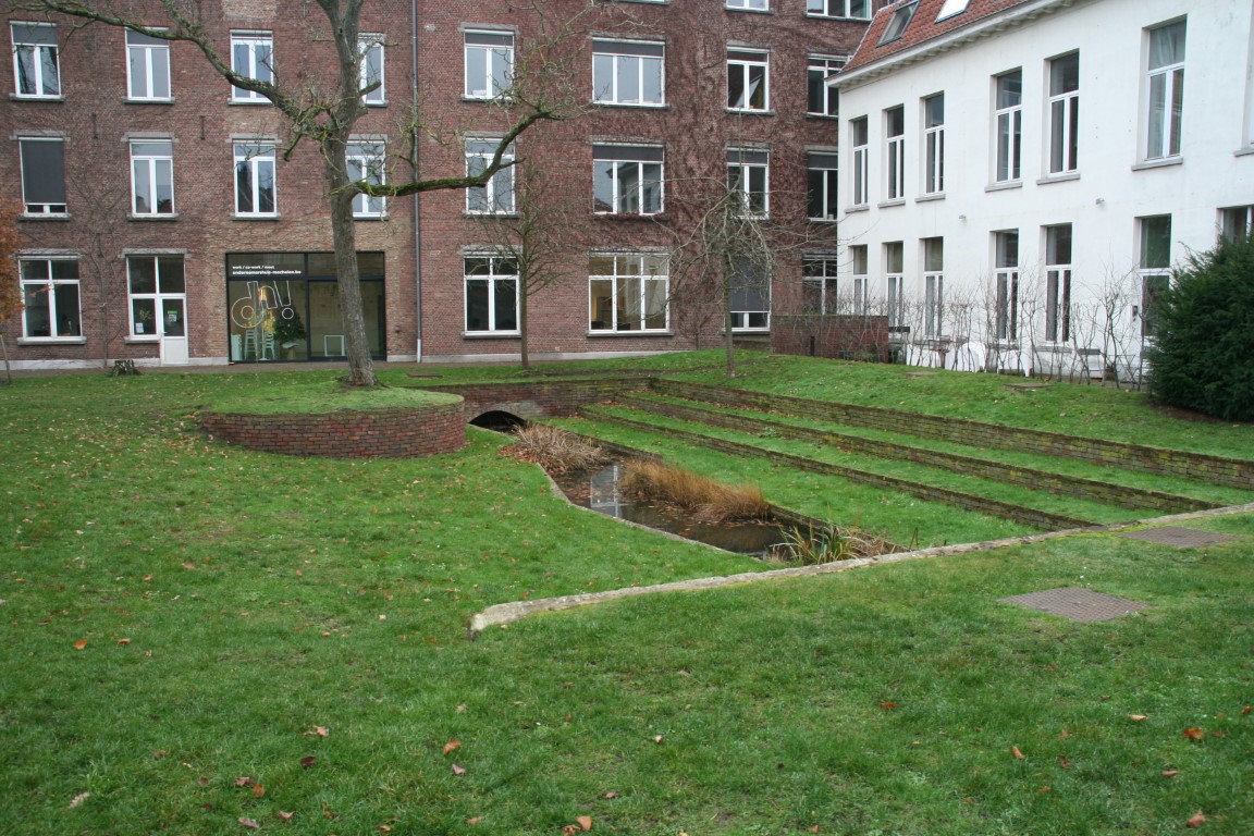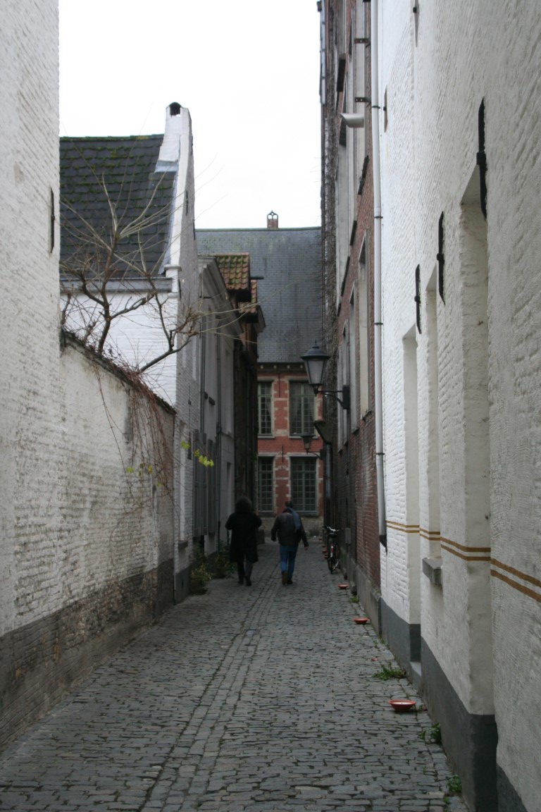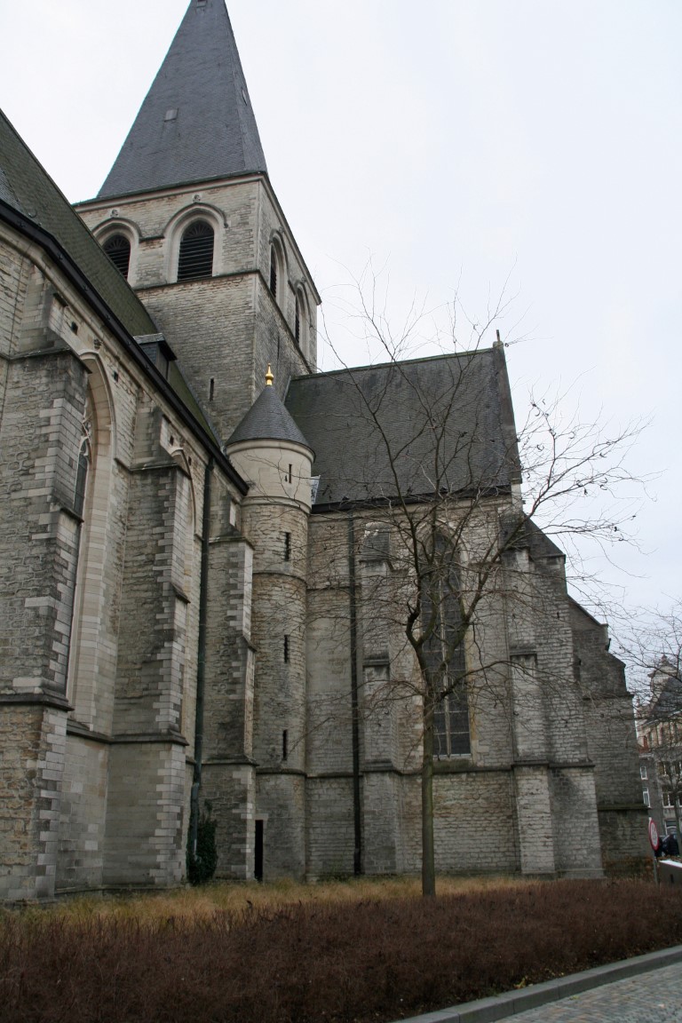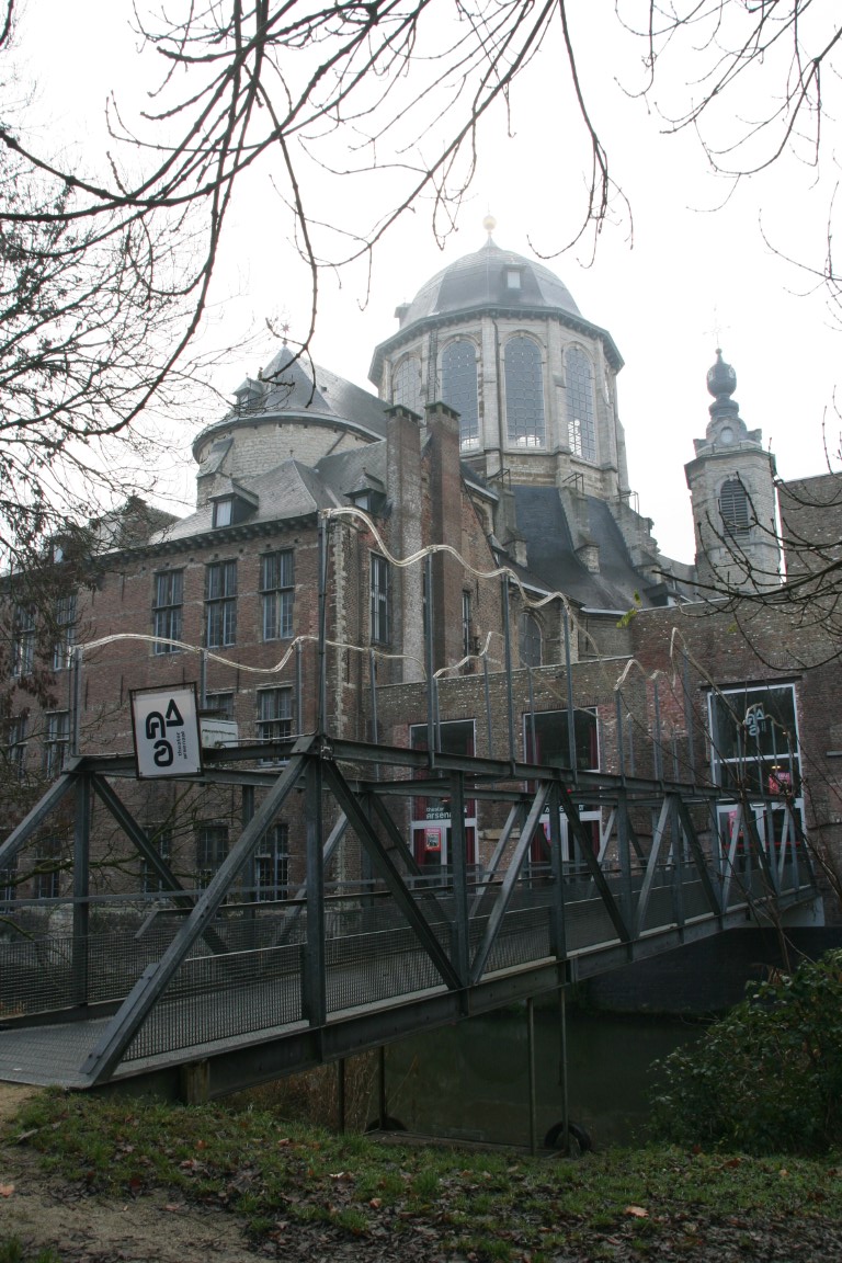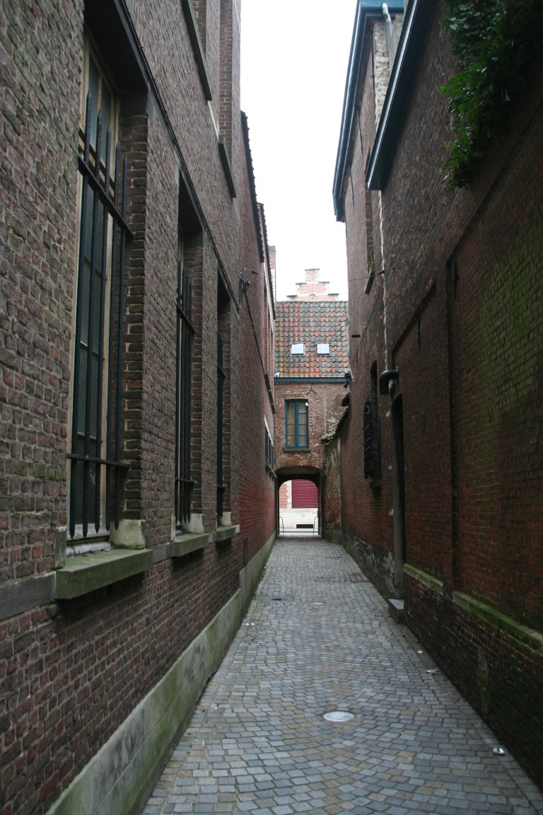 Het Groot Begijnhof is gesticht in de 13e eeuw en sinds het eind van de 16e eeuw gevestigd binnen de stadsmuren. Aan de Jesuspoort ziet men onder de poort een gotische kolom als getuige van de overblijfselen vanhet Hof van Fontes dat zich bij de aankoop in 1595 uitstrekte tot aan de huidige kerk.