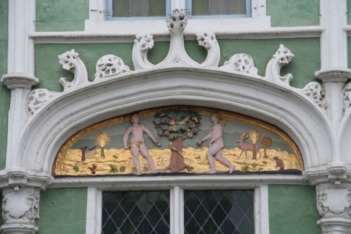 Het Paradijs: eveneens vanuit de eerste helft van de 16de eeuw. De twee reliëfs boven de gelijkvloerse vensters, ‘De Boom van Goed en Kwaad’ en ‘Uitdrijving uit het Paradijs’, gaven het huis haar naam.
