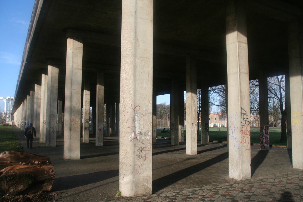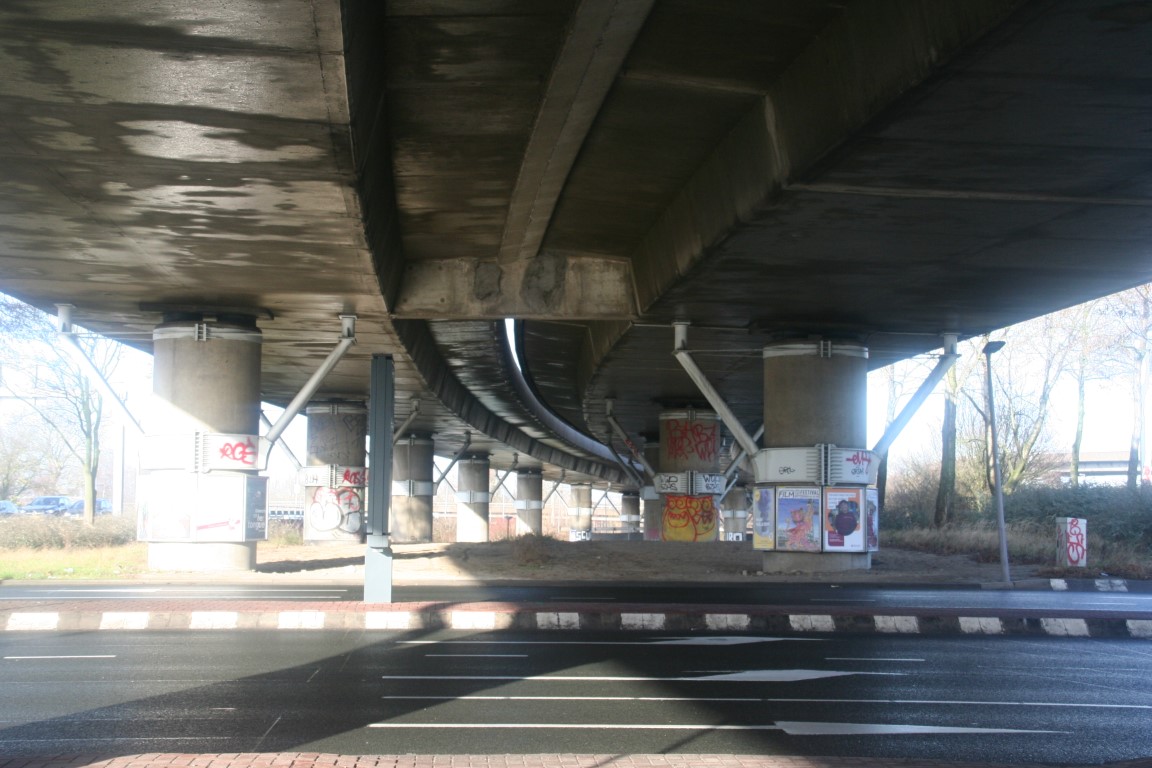 Onderdoor de A13 wandelen we verder richting Diergaarde Blijdorp.