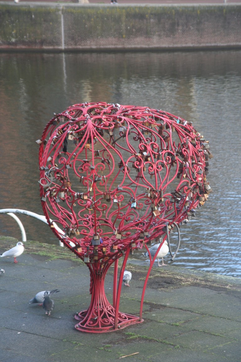 Links Locks of Love, rechts het Piet Heyn Monument.