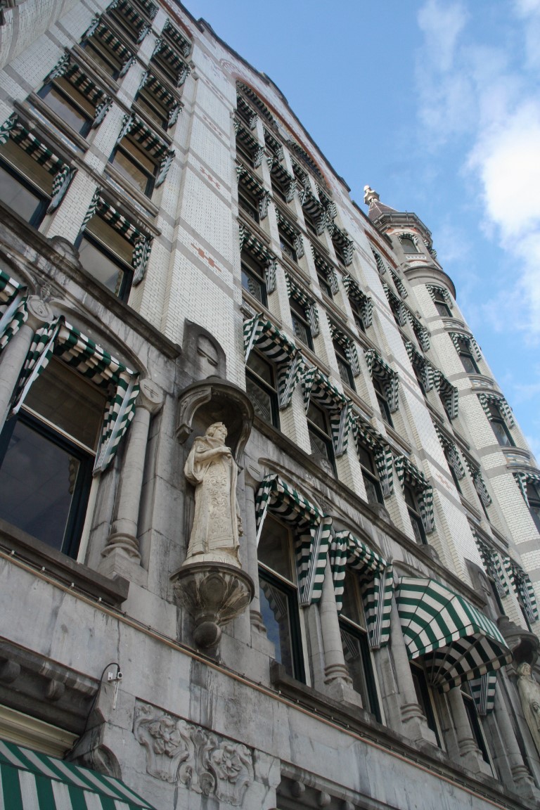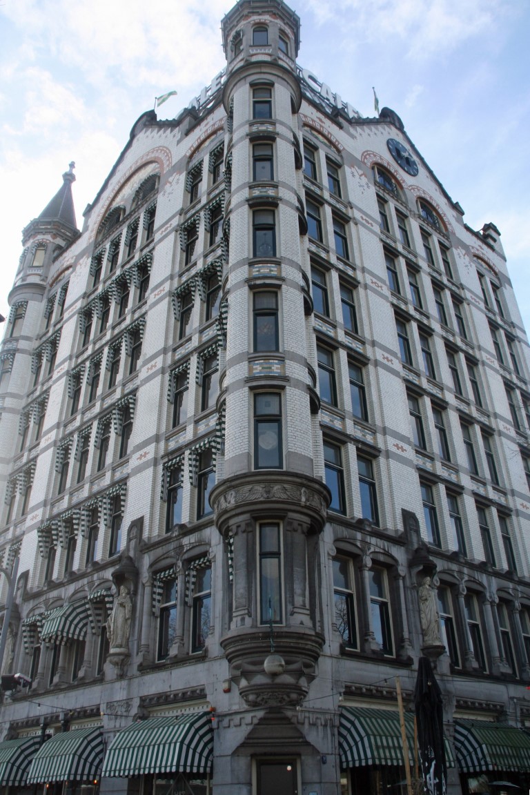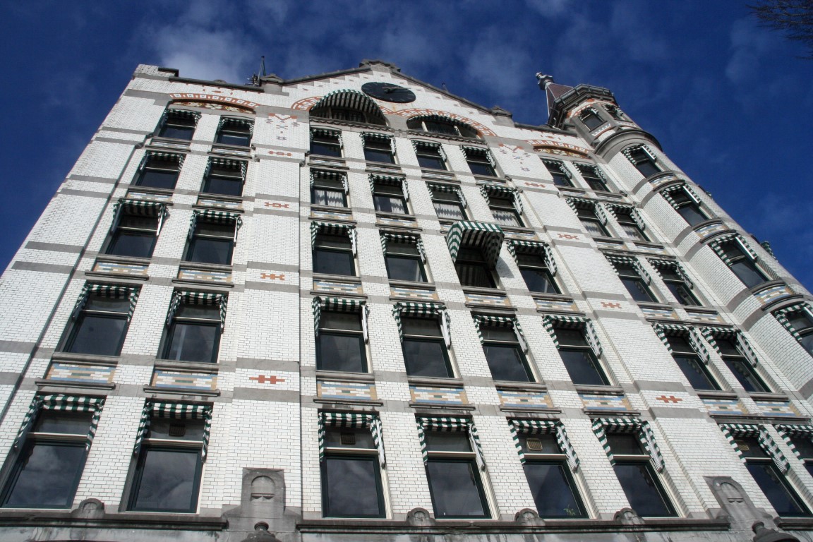 Het Witte Huis, de eerste wolkenkrabber van Europa. Dit 43 meter hoge gebouw werd gebouwd in 1898 en was lange tijd het hoogste kantoorgebouw van Europa. Het pand kreeg met repeterende elementen een strakke vorm, maar werd ruimhartig voorzien van sierelementen. Zo bevinden zich in de bogen bij de ramen Jugendstilmozaïeken en werd de gevel versierd met sculpturen. Het Witte Huis werd niet geraakt tijdens het bombardement in mei 1940, maar liep wel schade op door granaatscherven en kogels.