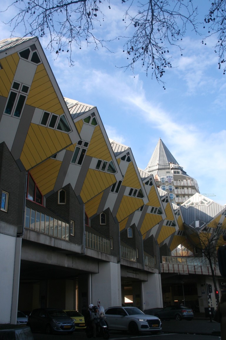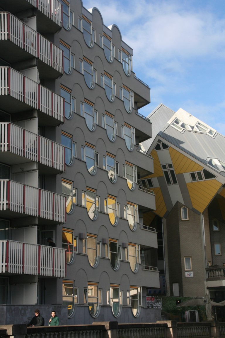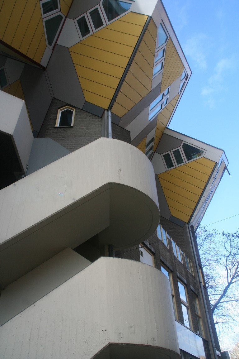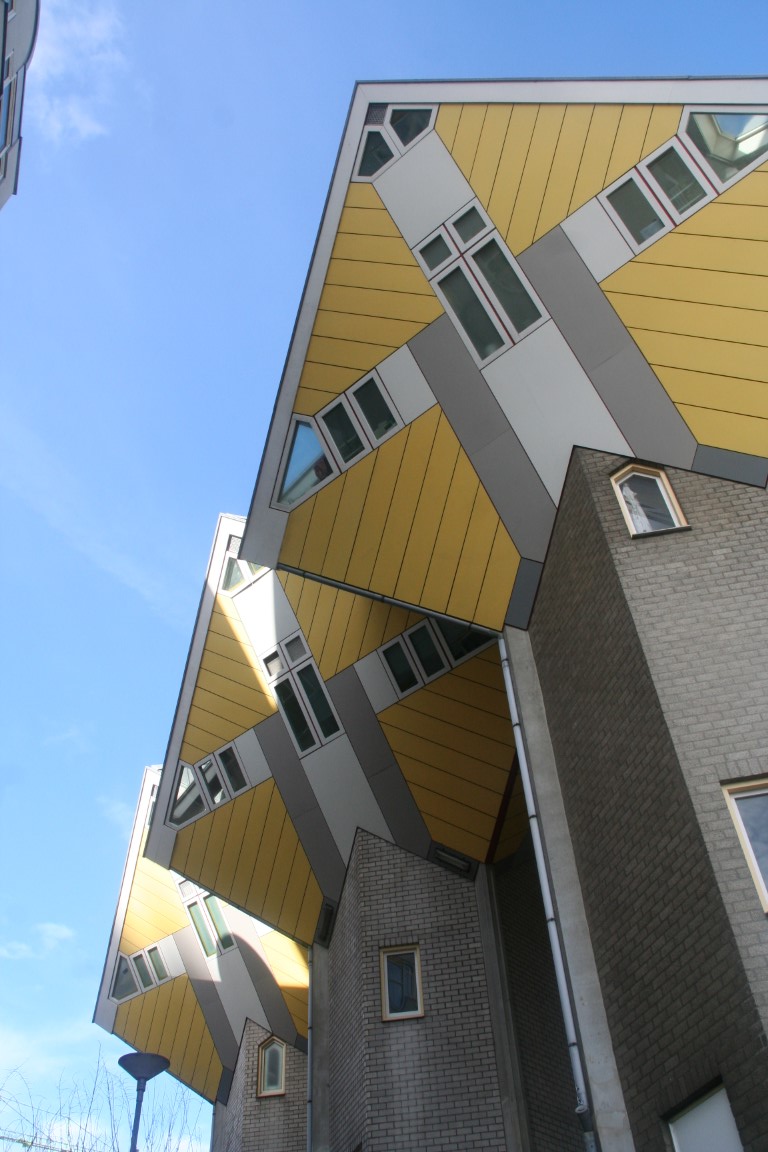 Tussen 1982 en 1984 bouwde men bij de Oude Haven in Rotterdam een aantal kubuswoningen. Deze huizen moesten een dorpje in de stad vormen. De huizen kregen geen tuin en de ruimte die tussen de palen ontstond bleef openbaar toegankelijk. Architect Piet Blom realiseerde dit idee in 1975 voor het eerst in Helmond. De kubuswoning is letterlijk een kubus, maar dan 45 graden gedraaid. De houten woning rust met één punt op een betonnen paal, waar zich ook de ingang bevindt.
