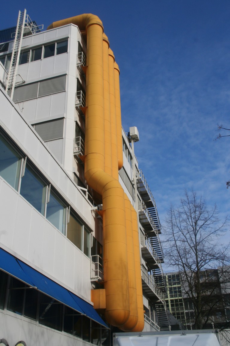 Links het Dampaviljoen, in het midden de toegangsweg van de Maastunnel. Rechtsonder het Erasmusziekenhuis.