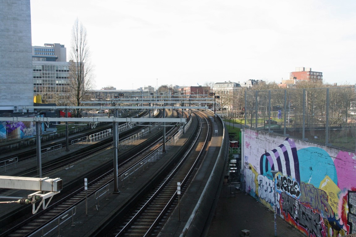 De wandeling begint bij het station en vandaar door de Spoorsingel.