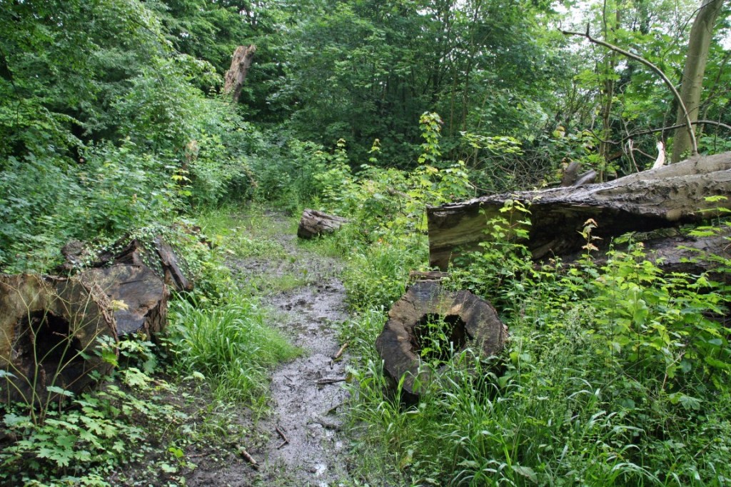 Zodra we het landgoed Gunterstein zijn gepasseerd gaan we verder over een pad wat onder “normale” omstandigheden een mooi gedeelte van de wandeling is. Het is nu echter een nat en glibberig pad.