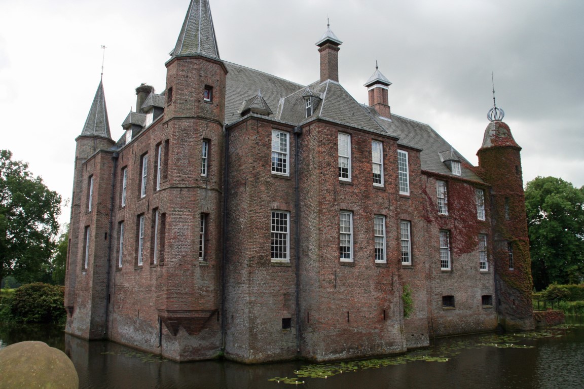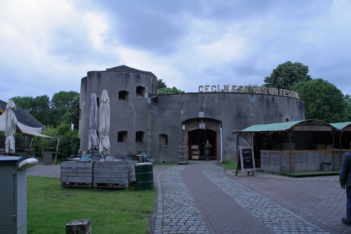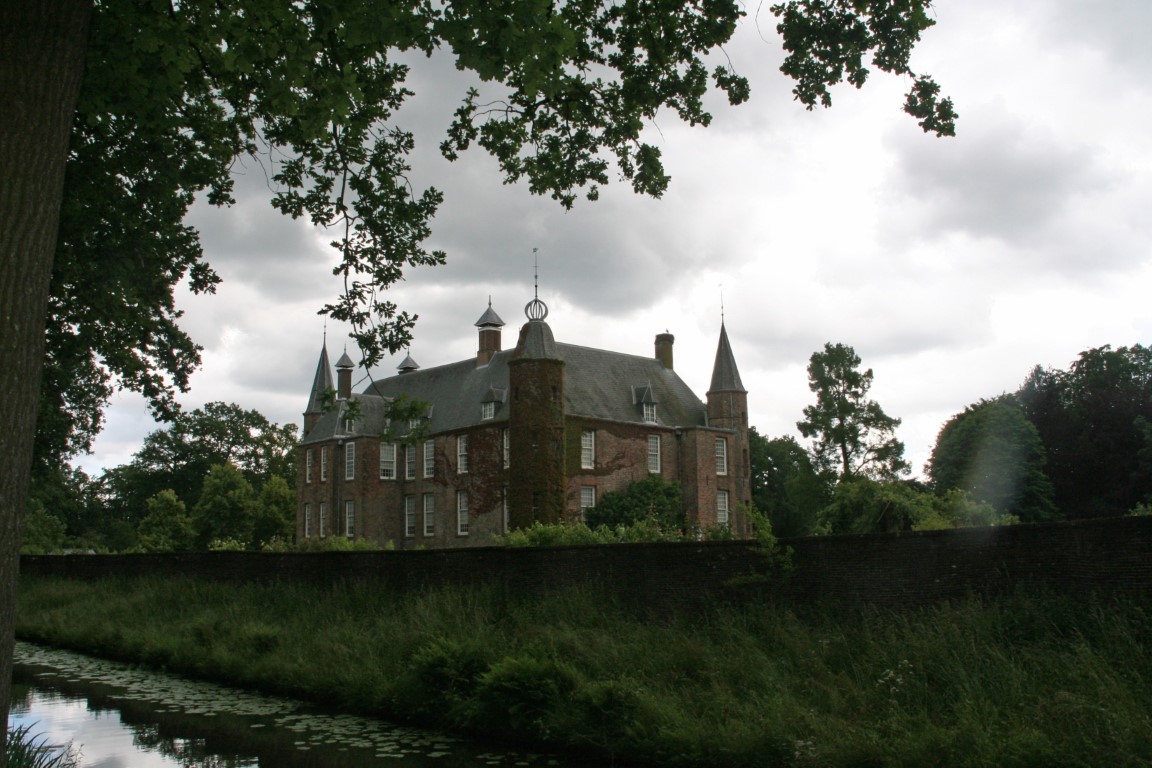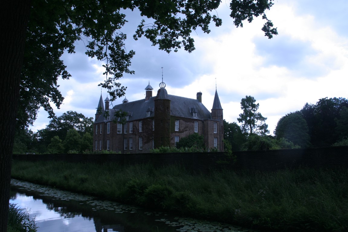 Op de weg richting het fort zien we naast de donkere dreigende luchten, in de verte kasteel Nijenrode.
