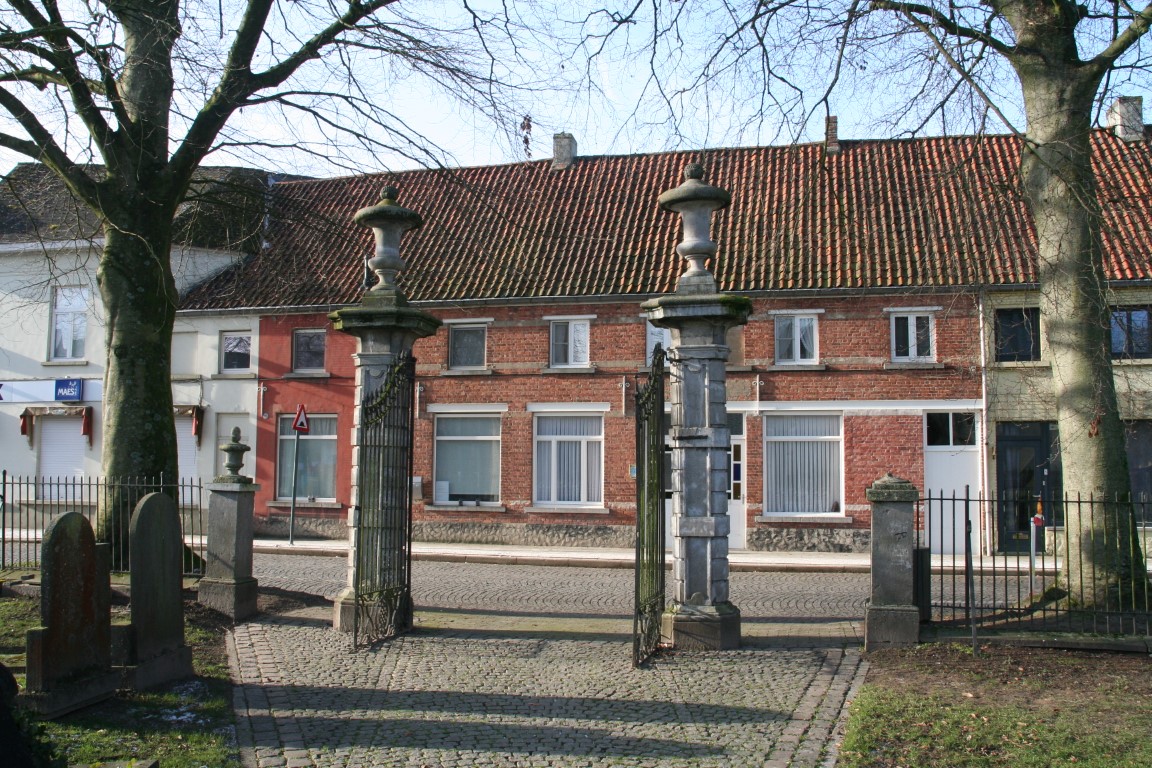 Twee keer twee enkelhuizen vermoedelijk van 1906, in spiegelbeeld tegen elkaar gebouwd en aldus het aanzicht van een herenhuis vormend, en horend bij het “Hof van Belsele”.