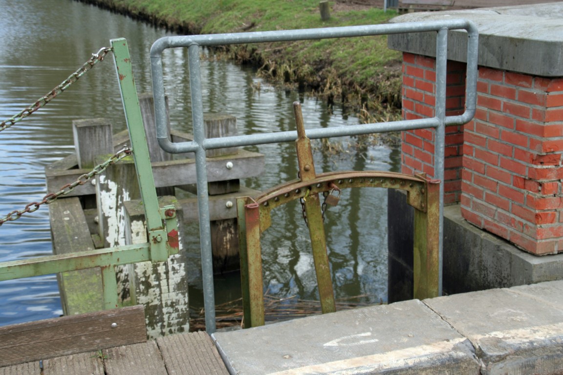 In één van de bruggenhoofden bevindt zich een ophaaldeur met tand- en heugelsysteem.
