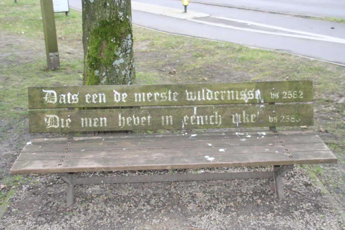 De tekst op de bank is: Dats een de meeste wildernisse Die men hevet in enich rike.