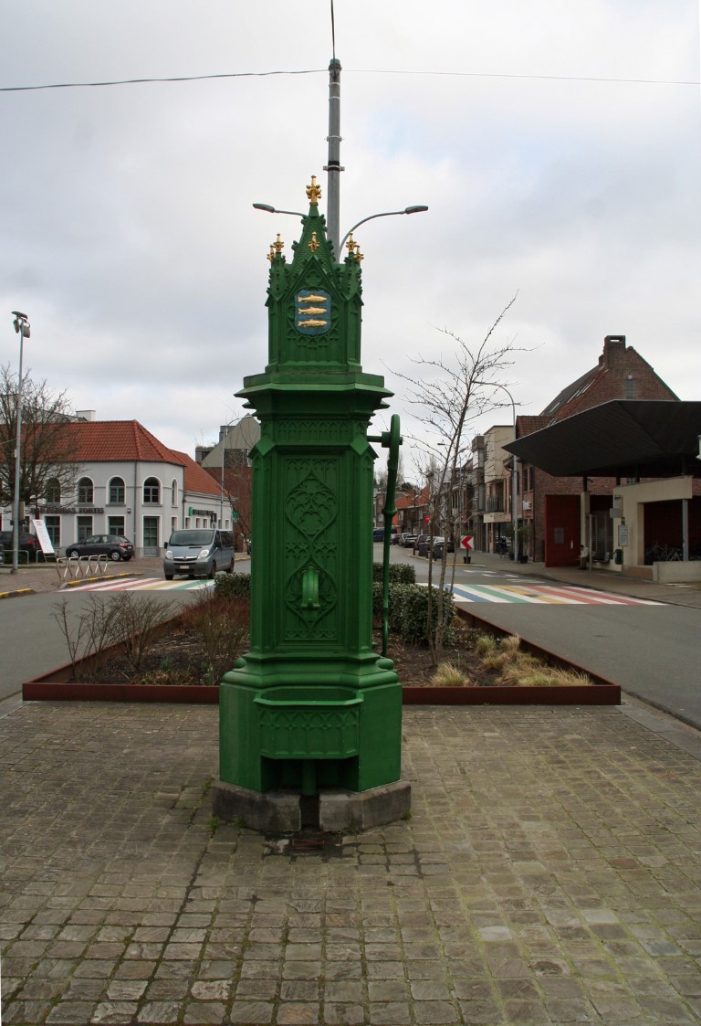 In het centrum van Stekene staat ook deze gietijzeren waterpomp uit 1873.