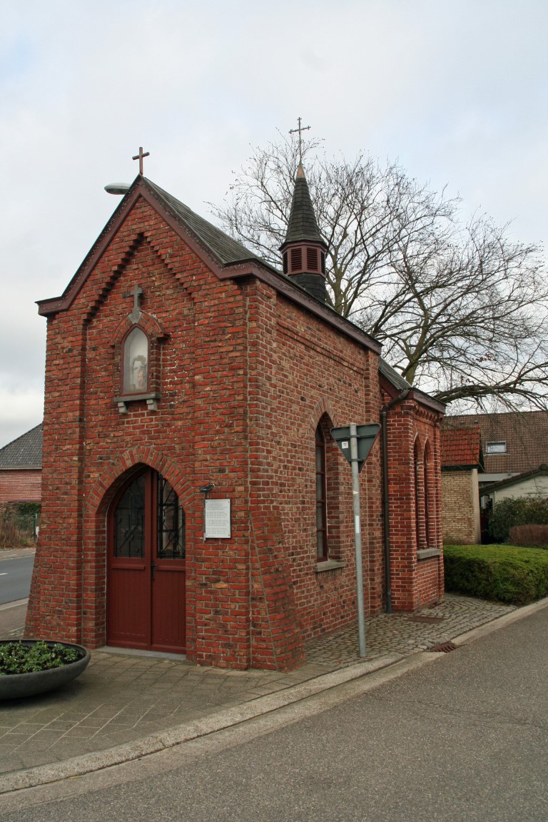 Kapel van de Heilige Antonius. Neogotische bakstenen kapel bestaande uit een rechthoekig beukje uit de jaren ’30 en een iets breder vijfzijdig koor van 1852.