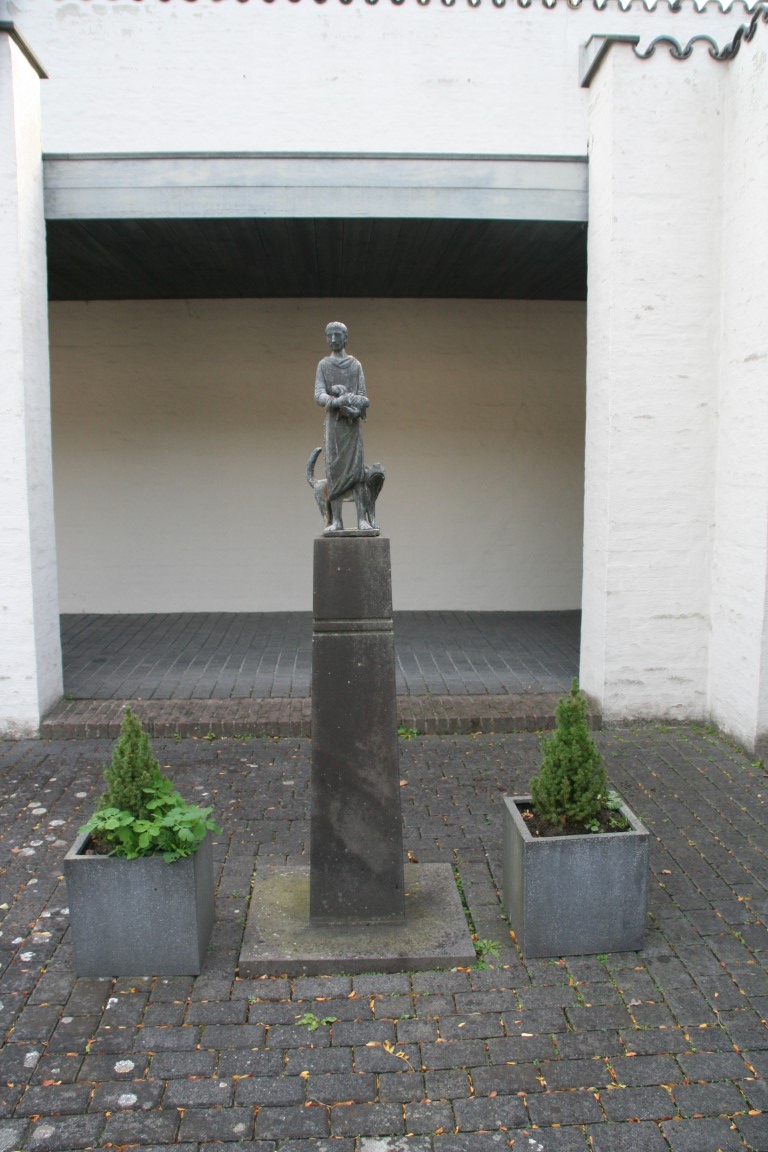 Standbeeld van de Veerman aan de potpolder met zicht op de Veerdienst aan de Durme.