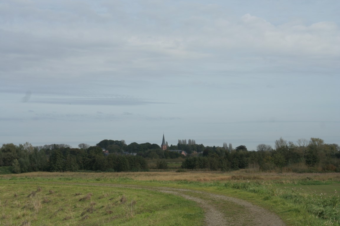 Dichter bij het eindpunt van de wandeling komend zien we de toren van de Onze Lieve Vrouwkerk.
