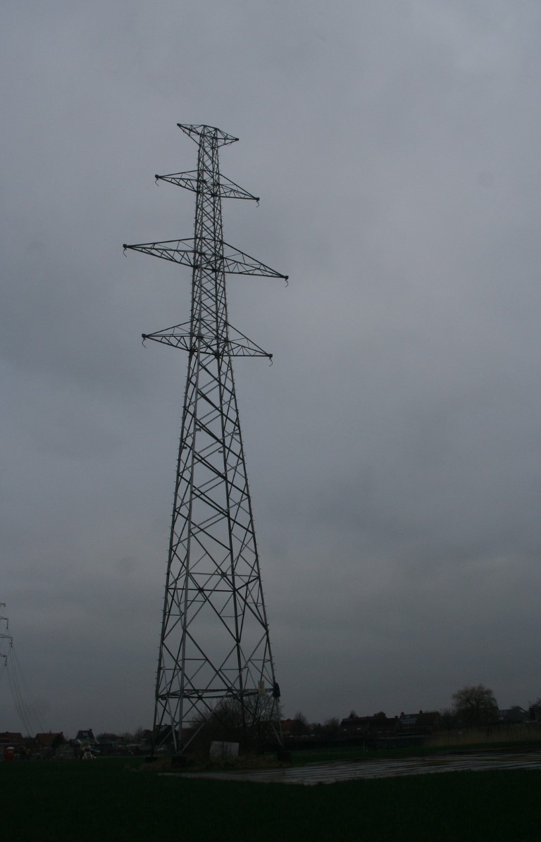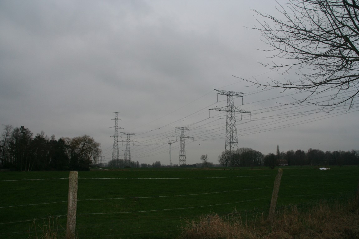 Eenmaal buiten de bebouwde kom van Haasdonk zien we dat ook in België hard wordt gewerkt aan de uitbreiding van het elektriciteitsnetwerk.