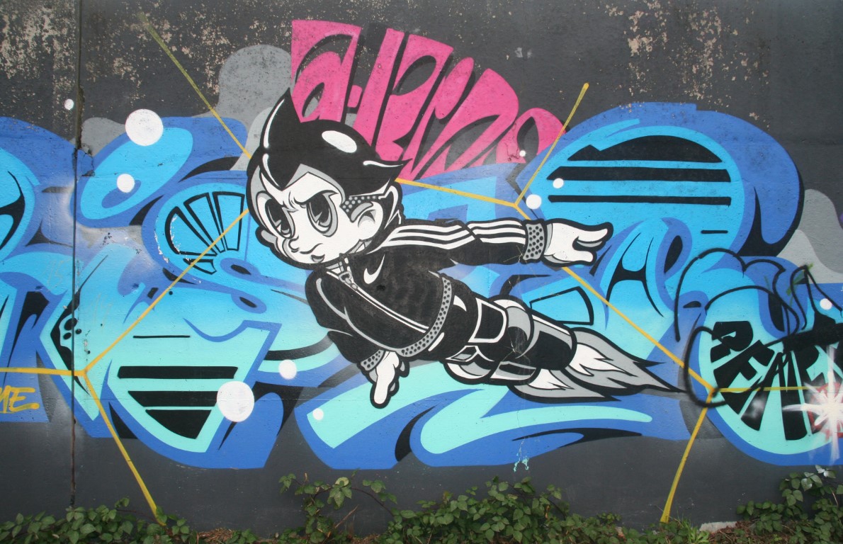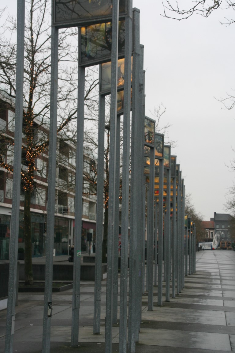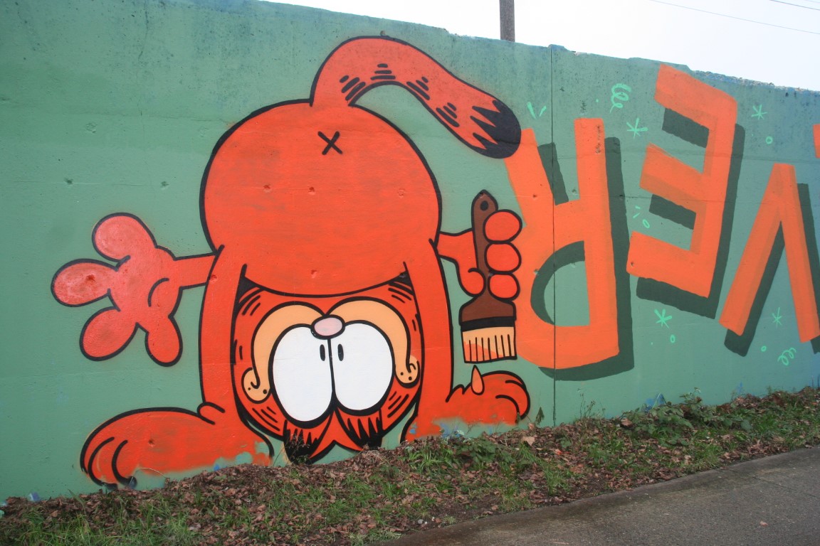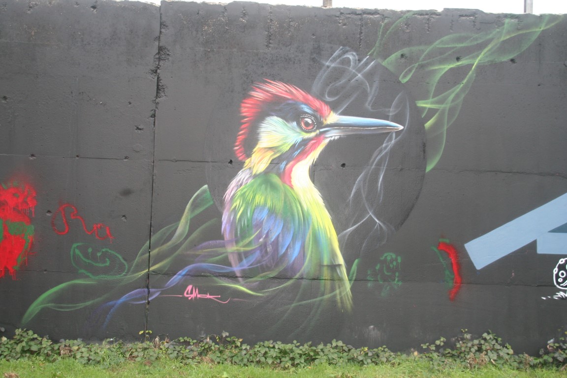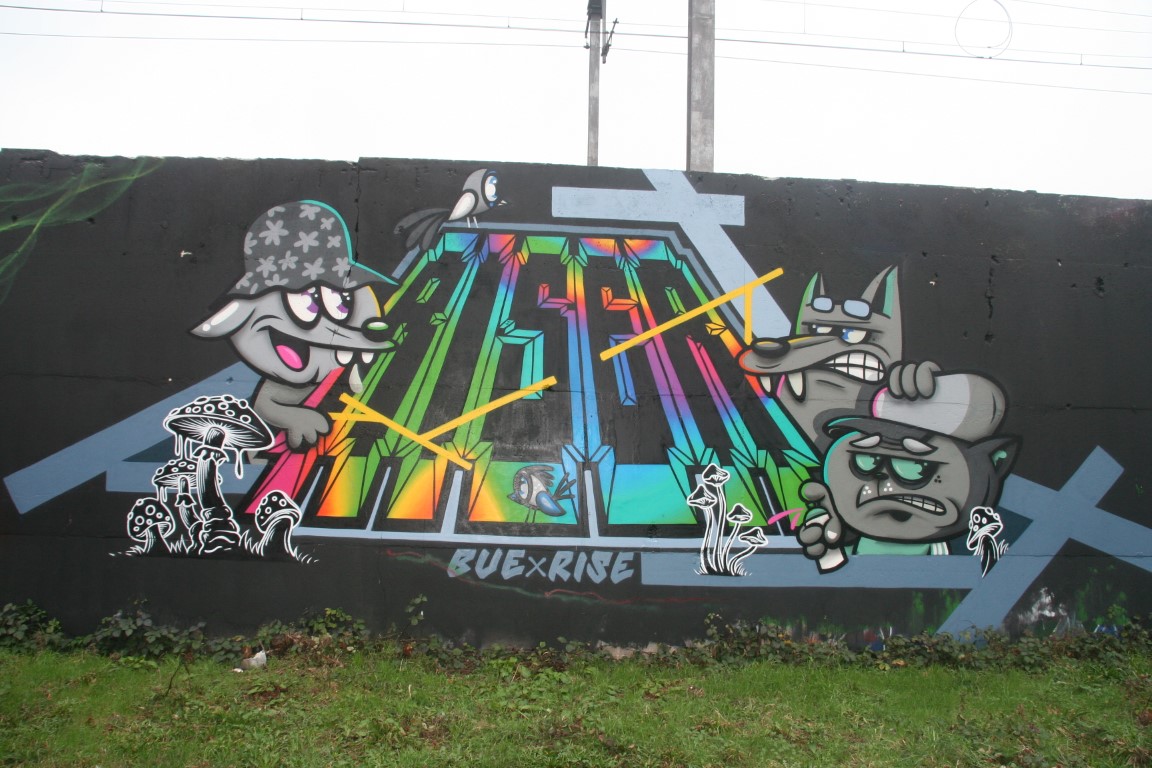 De route gaat verder langs de spoorlijn richting Belsele. Daarbij passeren we een lange muur met moderne kunst, graffiti genaamd.
