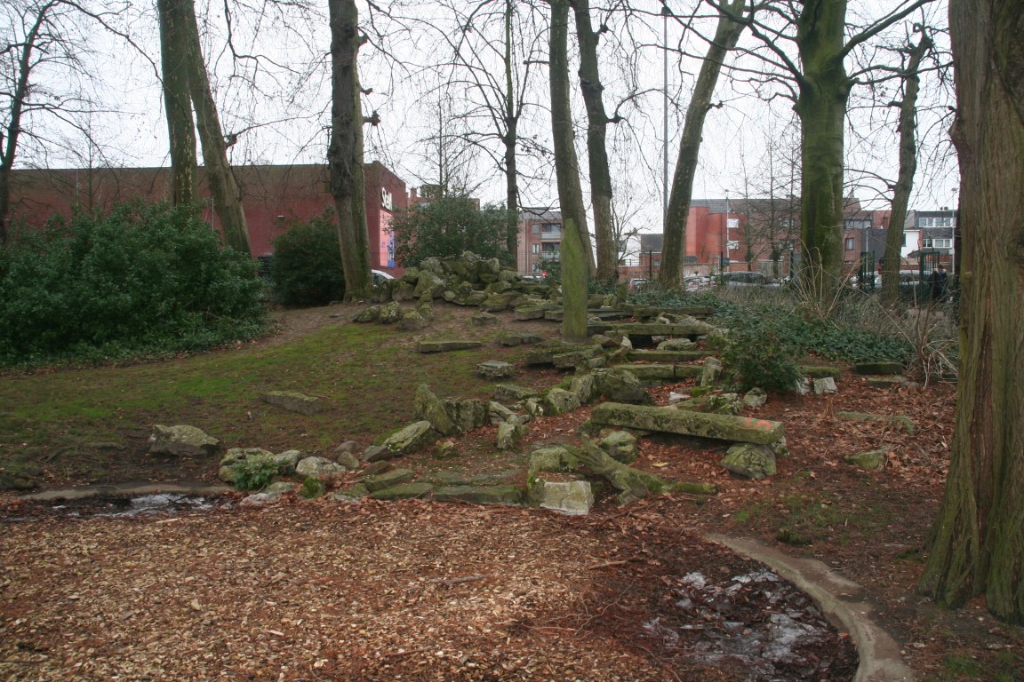 Ontworpen in 1846 doch pas in 1902 aangelegd en bebouwd met voornamelijk art-nouveaugetinte burgerhuizen. Lijstgevels van twee a drie traveeën en drie bouwlagen, dikwijls onderkelderd. Parementen van geglazuurde baksteen op sokkels van arduin. Gevelwanden sterk verlevendigd door de verschillende uitgewerkte deuren en vensters: rechthoekige, segment-, korf-, rondbogig, driekwartcirkelvormig, en de versierde borstweringen en boogvelden met sgraffitopanelen. (Sgraffito is een versieringswijze waarbij in de nog natte klei of engobe figuren of patronen worden gekrast zodat de onderlaag, die vaak een andere kleur heeft, zichtbaar wordt).