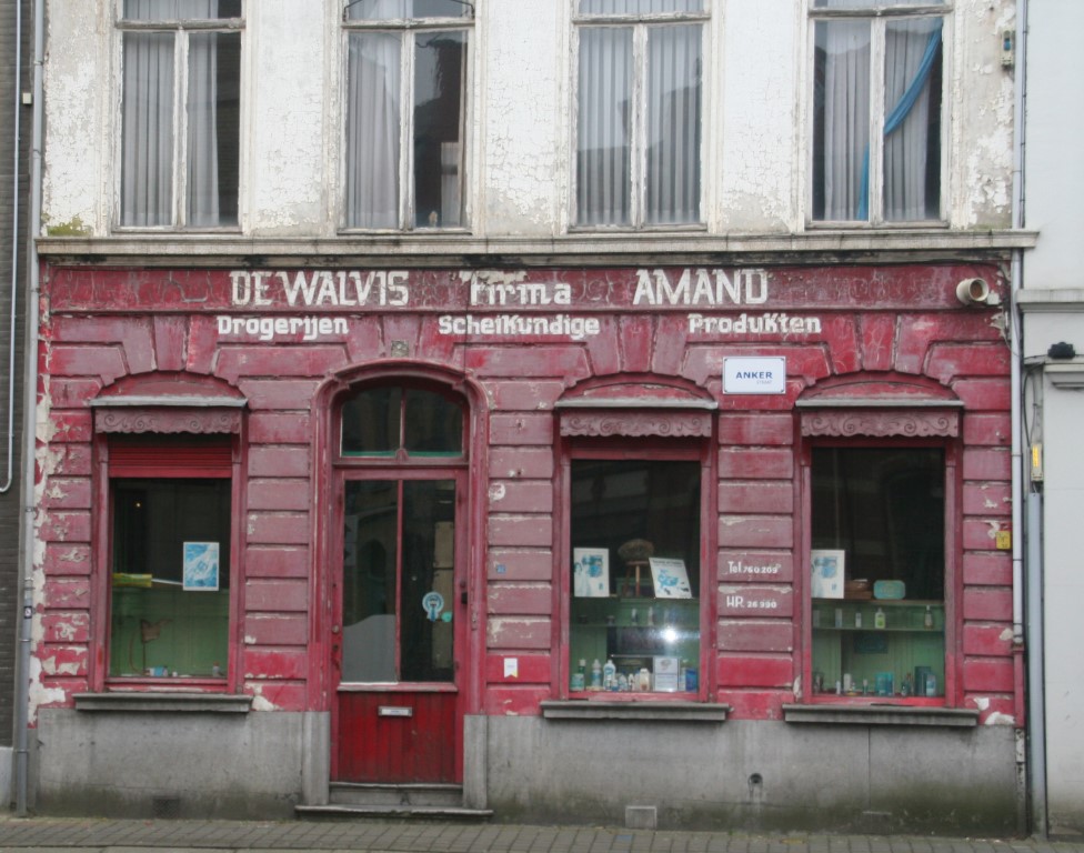 Hoe oud De Walvis is, kan niet met volledige zekerheid gezegd worden. Vermoedelijk werd in 1875 een voorgaand gebouw volledig afgebroken en heropgebouwd. De nog bestaande neoclassicistische gevel dateert van toen. Zowel voor als na de heropbouw deed het gebouw dienst als winkel, onder andere als schoenmakerij en stoffenwinkel. In 1899 werd het pand gekocht door Louis Le Roy-de Larsville, die het verhuurde aan een handelaar in muziekinstrumenten. Eugeen Amand kocht op 23 december 1918 het gebouw voor 15.000 Belgische frank. Het had een gunstige ligging, op de weg naar Antwerpen en in het centrum van de stad, vlakbij de Houtbriel, de Grote Markt en de toen nieuwe Stationswijk. Amand was opgeleid als apotheker maar koos ervoor om een drogisterij van het pand te maken omwille van het gebrek aan drogisterijen in de buurt. Hij noemde zijn zaak De Walvisch, gespeld in de toenmalige spelling. De dierennaam was toen een modeverschijnsel en was ook passend omwille van de verkoop van levertraan. Begin 1919 kreeg de winkel een nieuw interieur en ook de gevel werd toen in het rood geschilderd. Op de gevel kwam het opschrift “De Walvis Firma AMAND”, met eronder “Drogerijen Scheikundige Produkten” in het wit te staan. In mei 1919 opende de winkel de deuren. De opening was een groot succes, waardoor zeep, tandpasta, bruiswater en toiletpapier op het einde van de dag volledig uitverkocht waren.