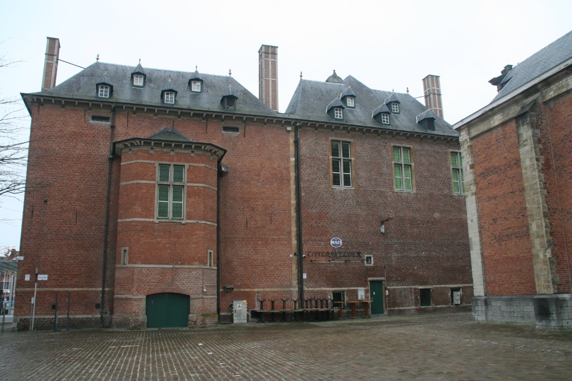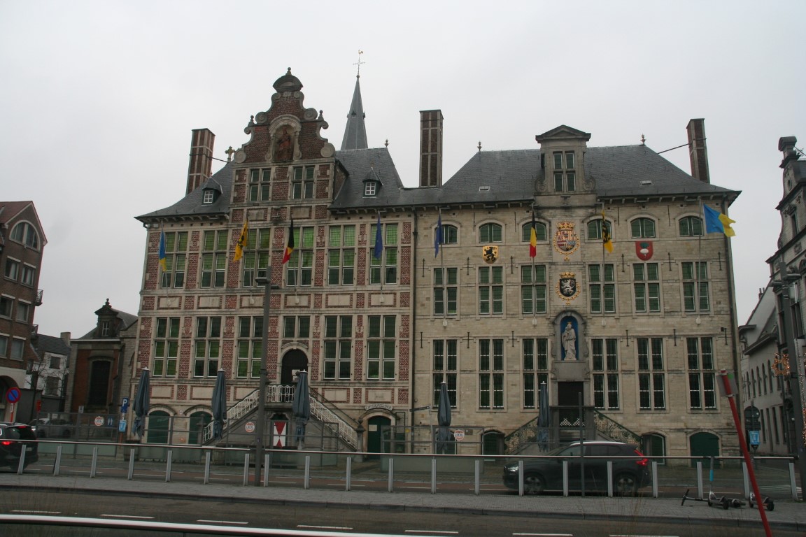 Het Oud Parochiehuis, een barok pand, werd opgetrokken in 1663-1664. De trap in rococostijl stamt uit 1776. Het Sint-Nicolaasbeeld werd In 1867 in de geveltop toegevoegd. Aanvankelijk fungeerde het gebouw als zetel van de Vierschaar waarna het tot 1844 als stadhuis dienst deed. Vervolgens zetelden hier de Rechtbank van Koophandel en de Werkrechtersraad.