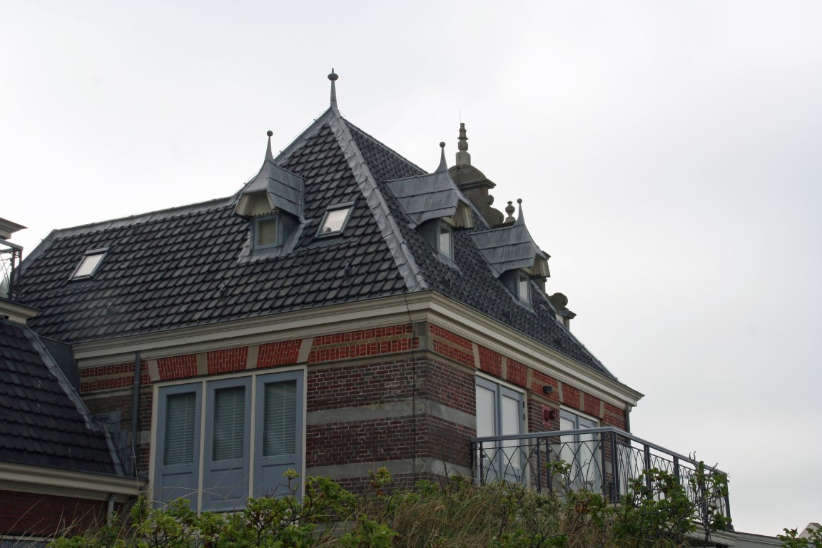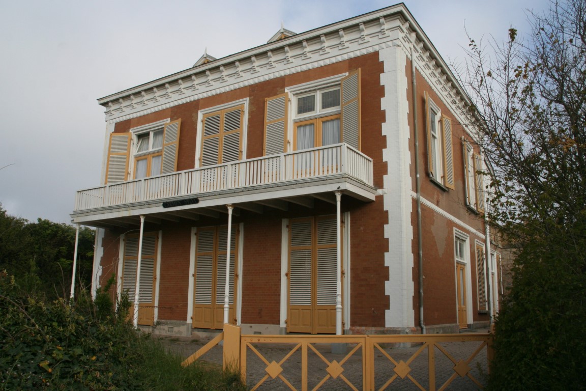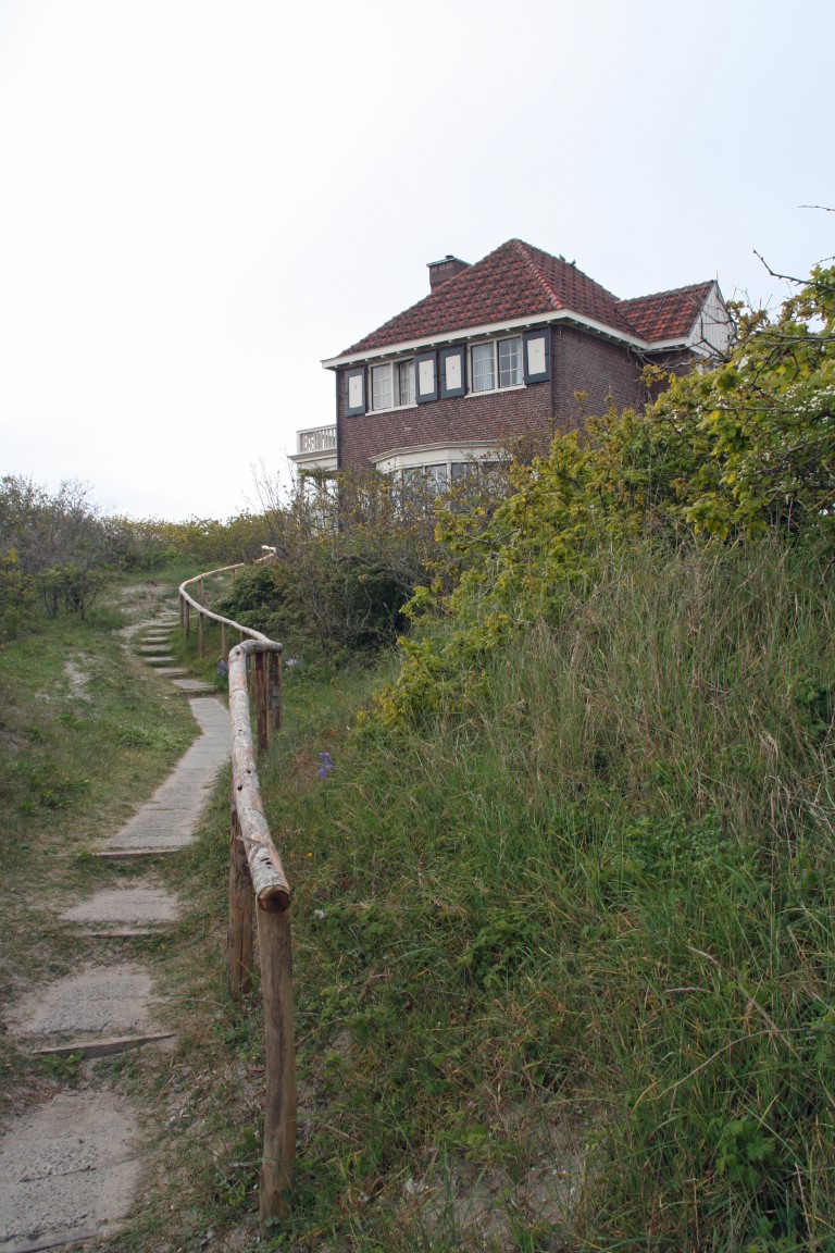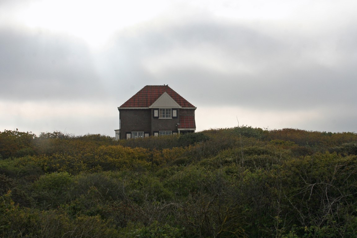 Op de top van een duin gelegen villa, rond 1920 gebouwd onder invloed van Interbellum-architectuur.