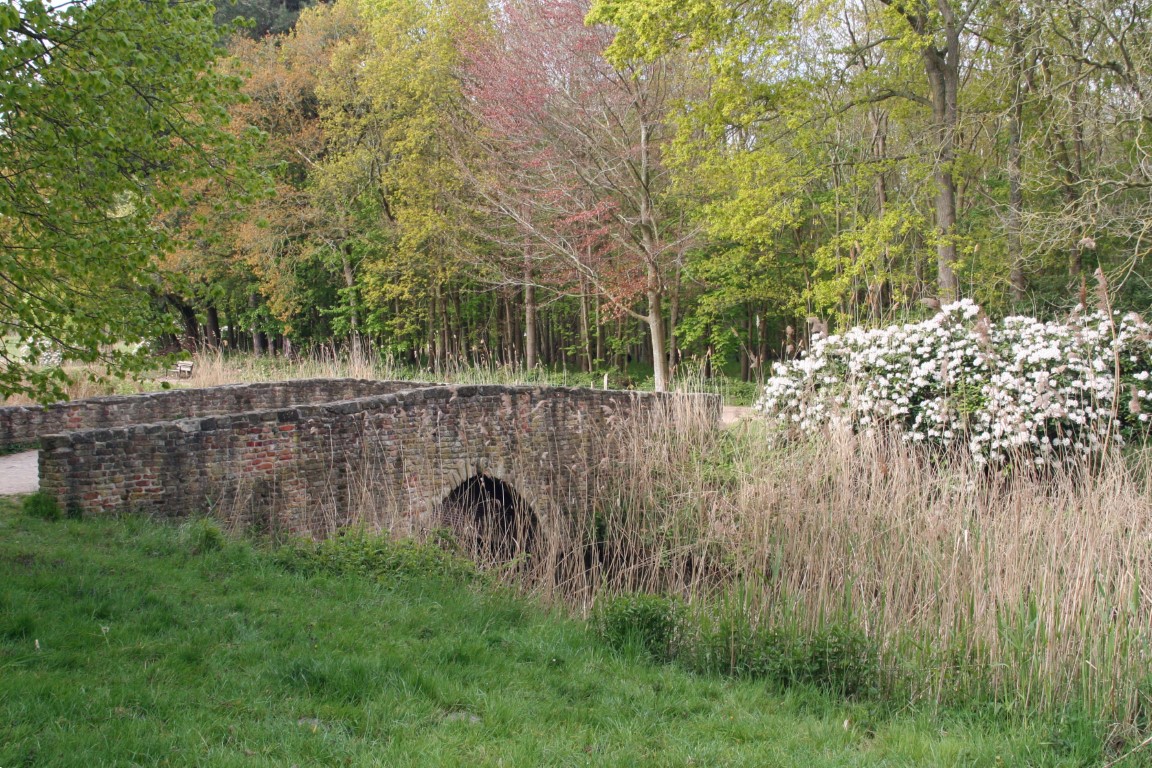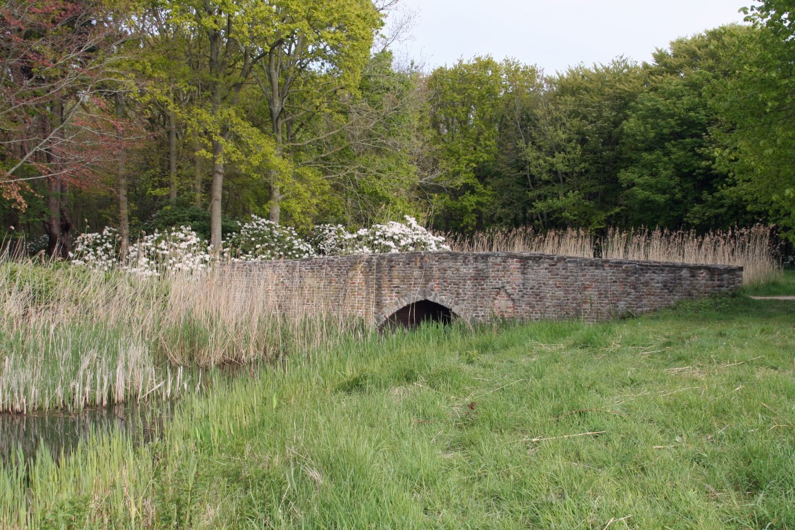 Rond 1800 zal de grote landschappelijke waterpartij ten noorden van kasteel Westhove zijn aangelegd. In dezelfde periode moet ook een quasi-antieke en ruïneuze brug (een folly) zijn gebouwd (bouwjaar 1810 of net ervoor wordt het meest genoemd, tussen 1796-1807). Het is de brug die later de Romeinse brug ging heten. Kort na het gereedkomen stortte de brug al in, vervolgens werd zij opnieuw opgebouwd. Eind 1944 bliezen zich terugtrekkende Duitse troepen de brug op. Na de oorlog verzamelde de toenmalige boswachter de restanten en in 1961 herbouwde hij de brug.