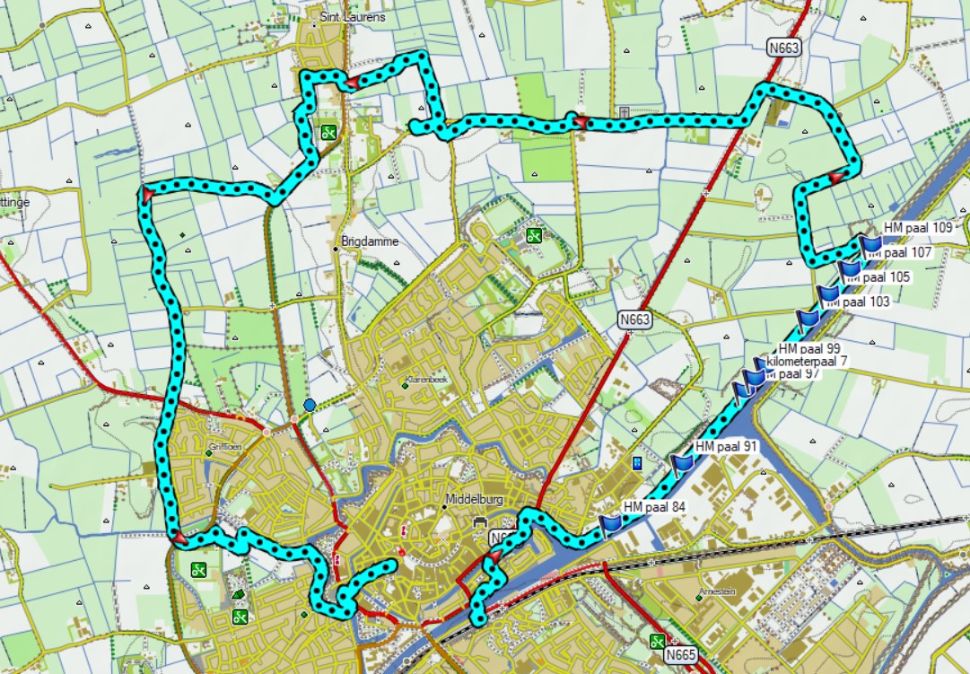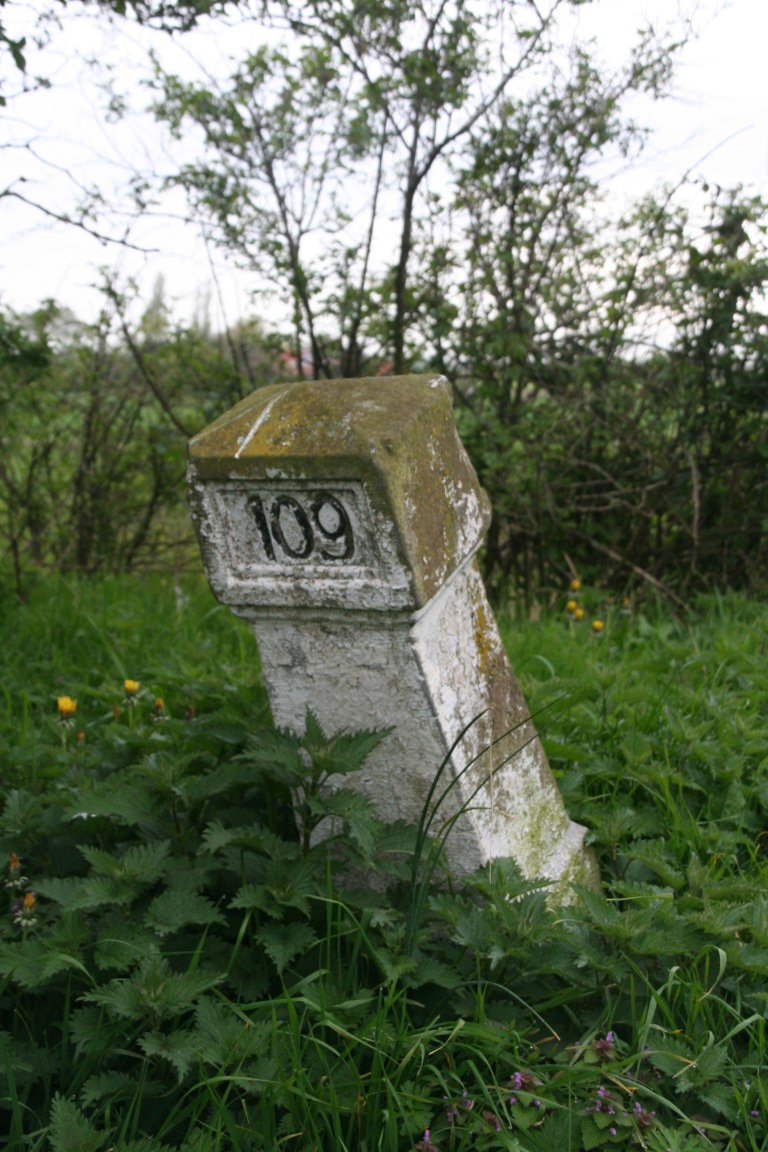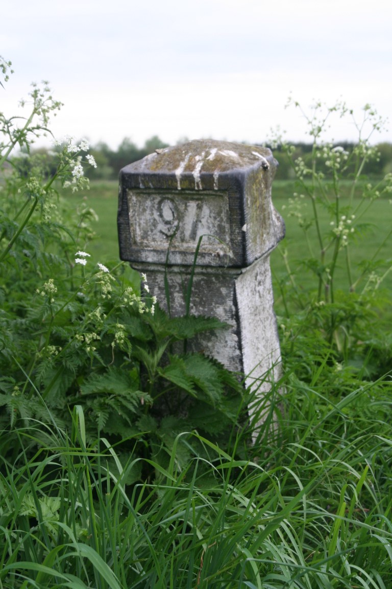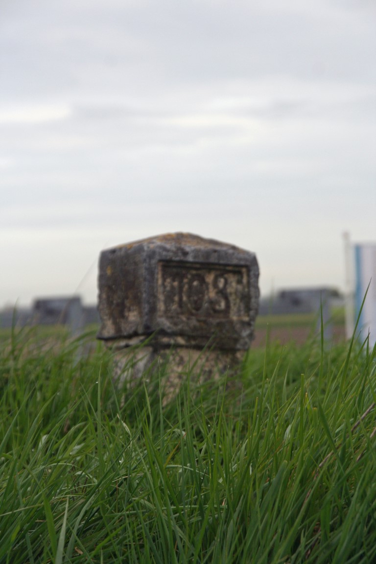 Langs het kanaal vinden we een aantal hectometerpalen en één bijbehorende kilometerpaal
